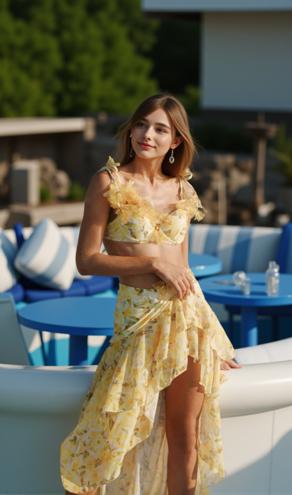Get ready to make a splash with the Donahue Printed Three-Piece Swimsuit. This stylish swimsuit set includes a top, bottom, and cover-up for all your beach or pool day needs. The colorful print is sure to turn heads, while the comfortable fit and durable fabric will keep you feeling confident and carefree. Dive in and enjoy the sun in style with the Donahue Printed Three-Piece Swimsuit!