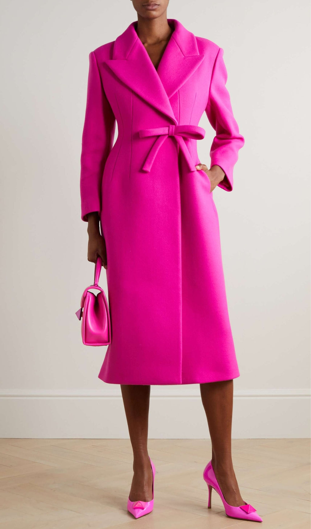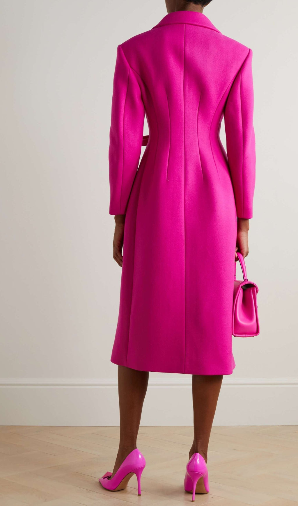 Brave the elements in style with this cozy wool-blend coat in a vibrant pink hue. A double-breasted front and oversized notched lapels exude timeless sophistication. Dropped shoulders relax the silhouette for easy layering over chunky knits.