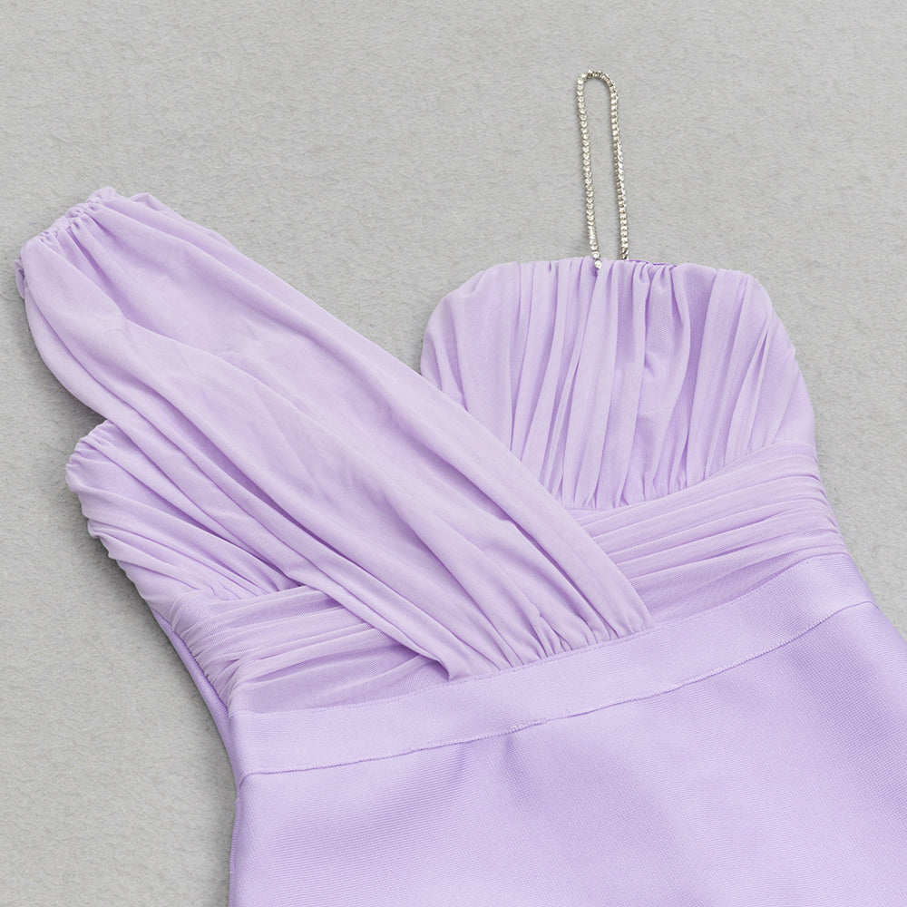DRAPED CRYSTAL STRAP HIGH LOW DRESS