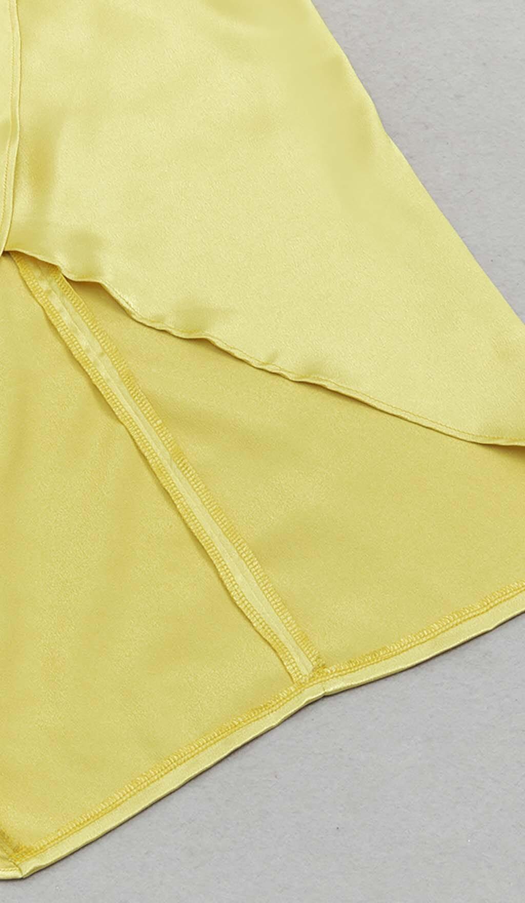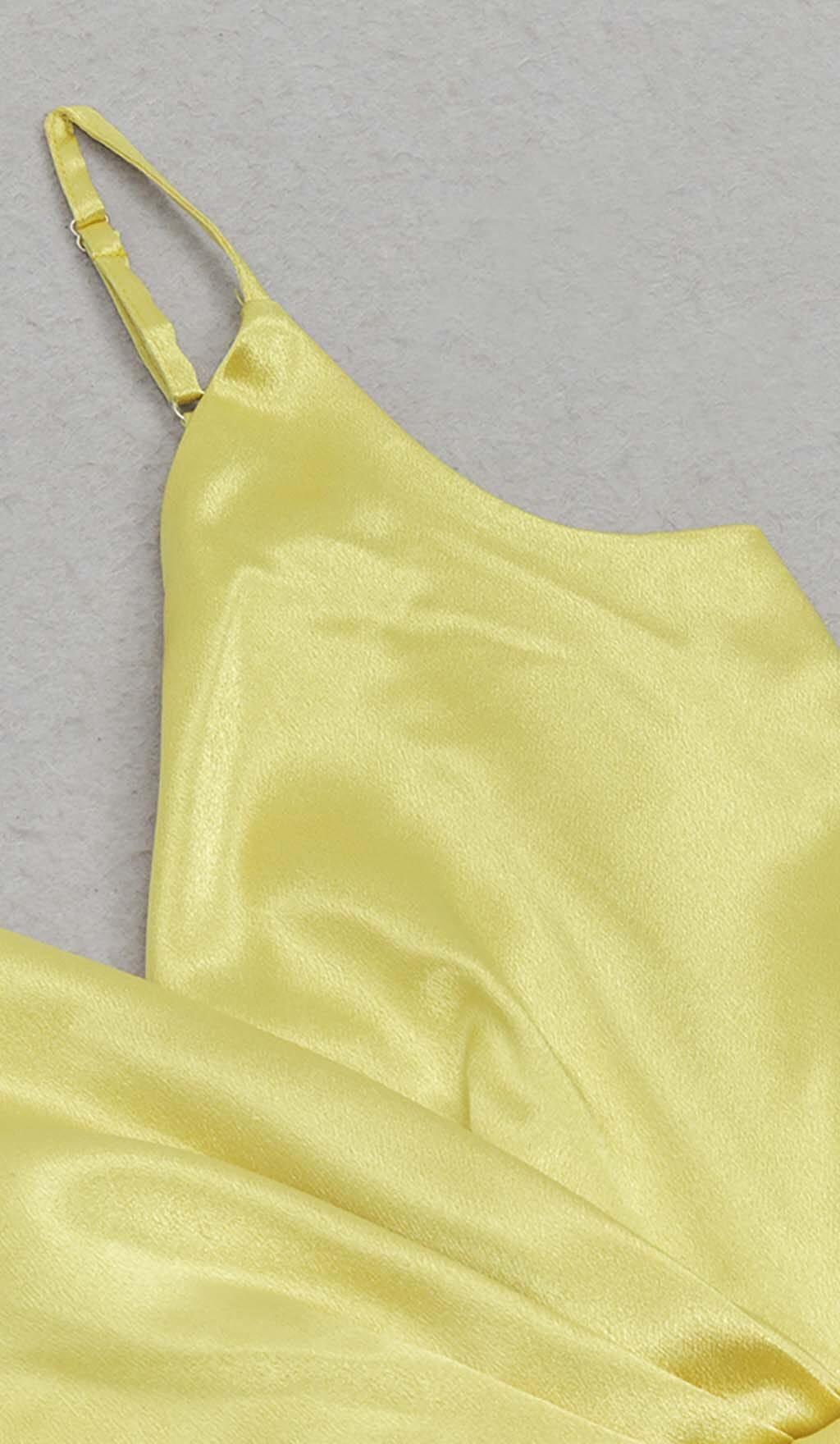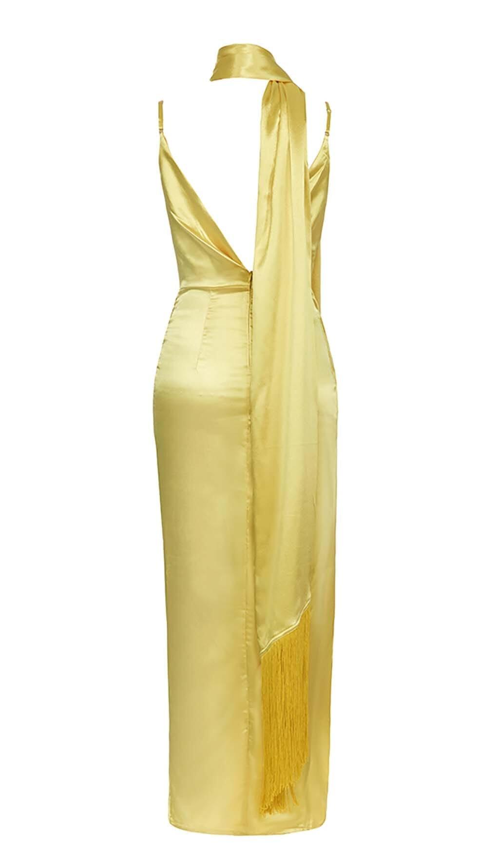 DRAPED DETAIL HIGH SLIT MAXI DRESS IN GOLD