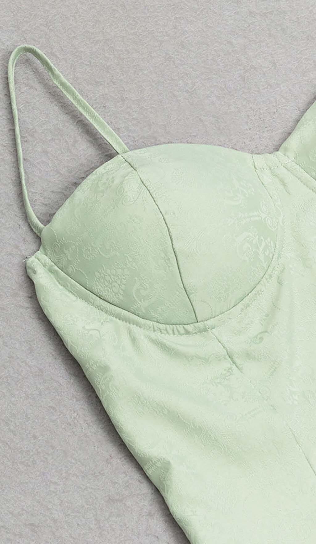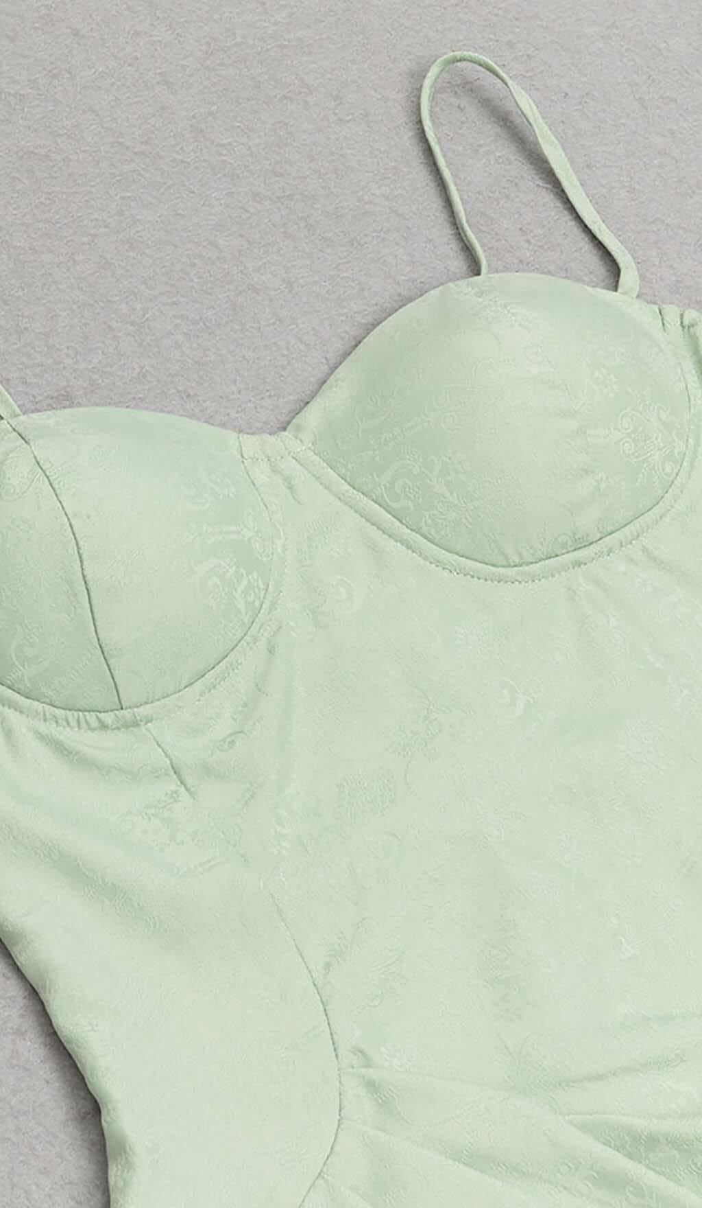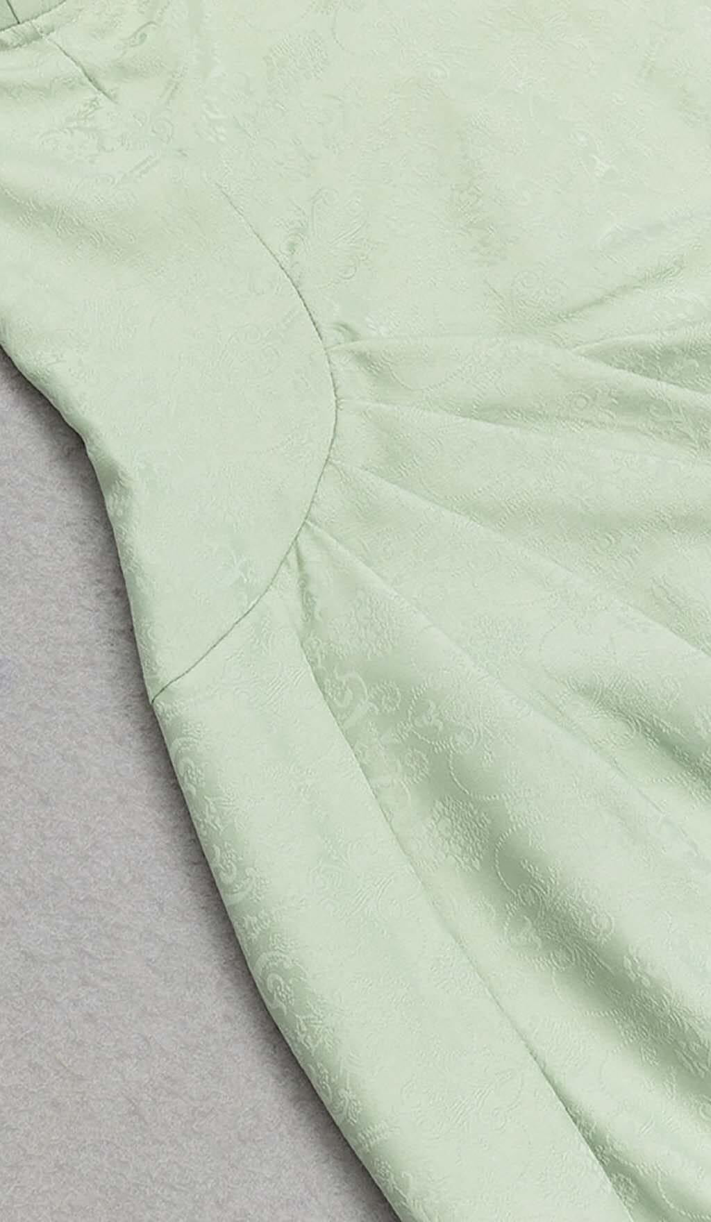DRAPED LINEN MIDI DRESS IN LIGHT GREEN