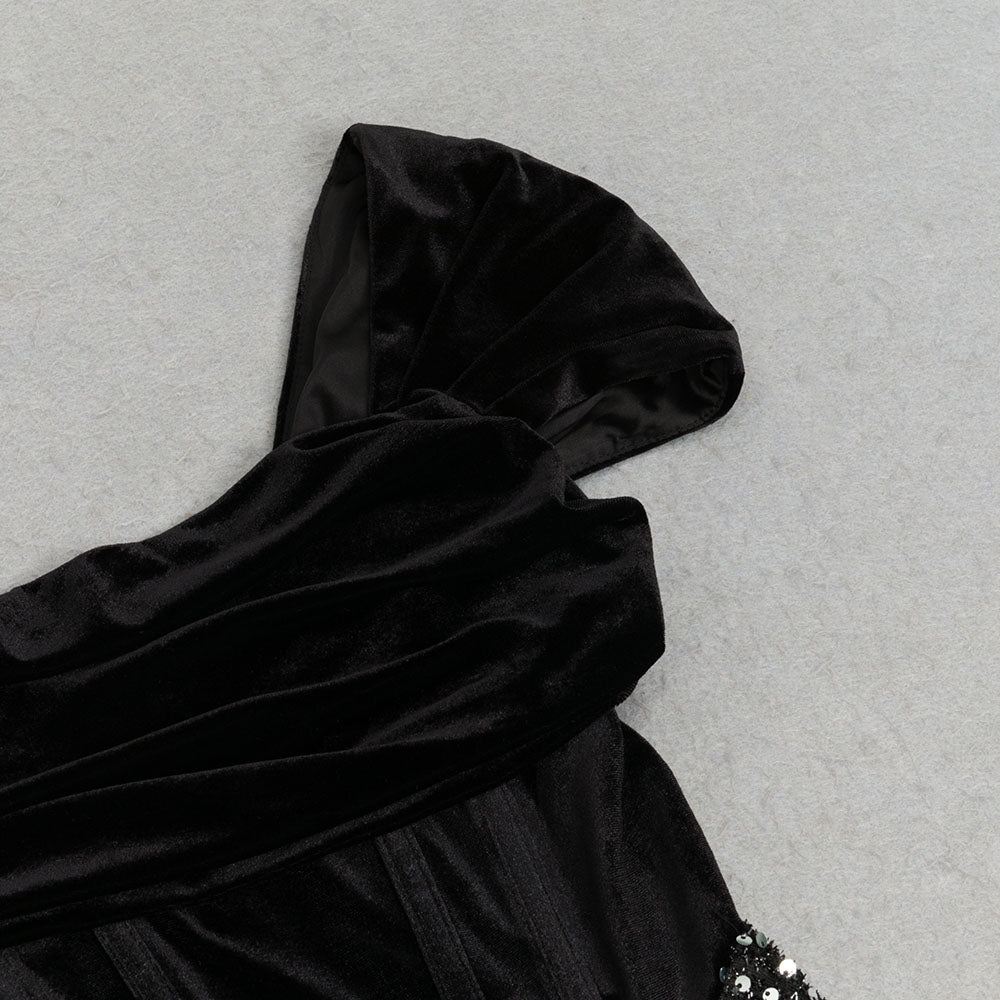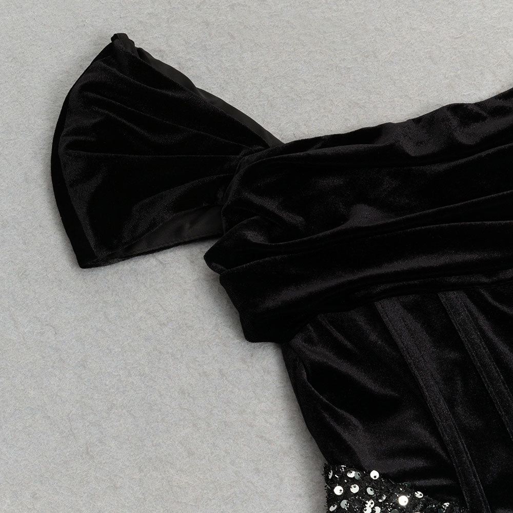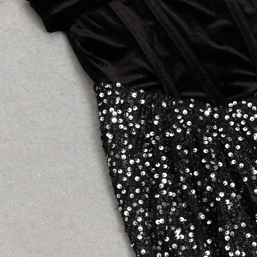 The soft velvet fabric drapes beautifully, while the sparkling sequin details add a touch of glamour. Perfect for any special occasion, this dress will make you feel confident and stylish.