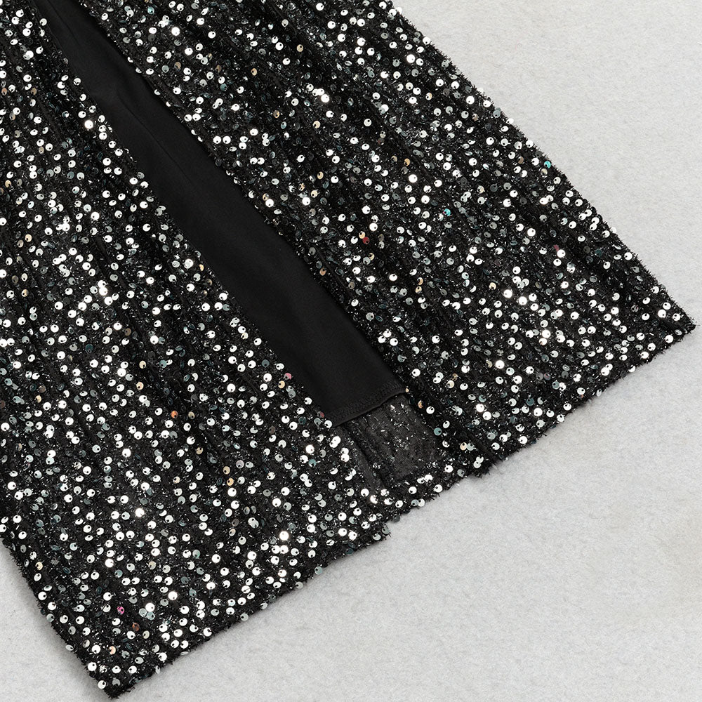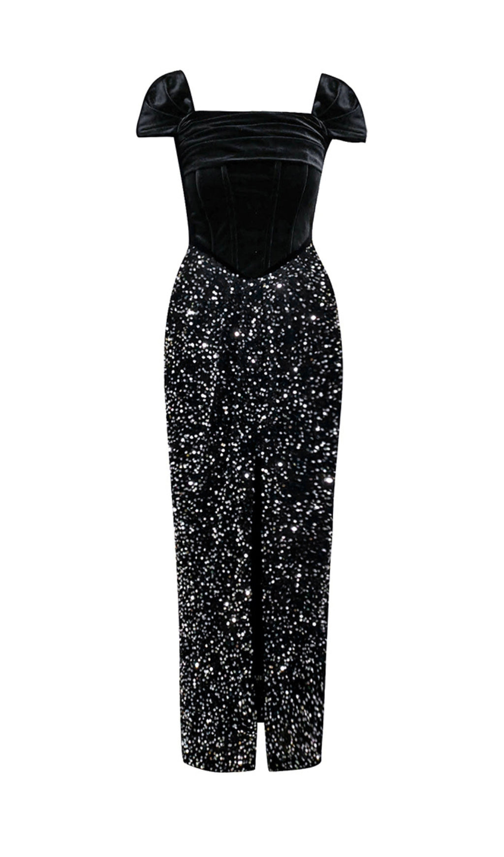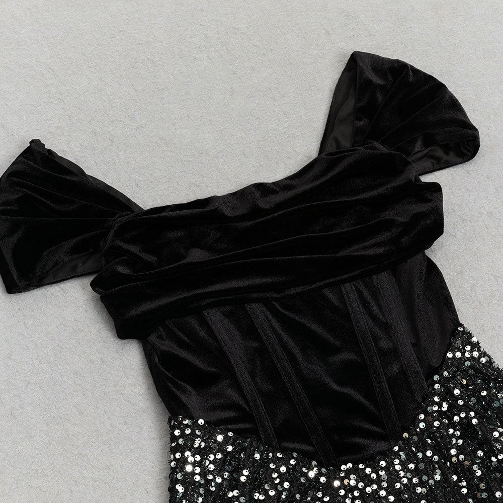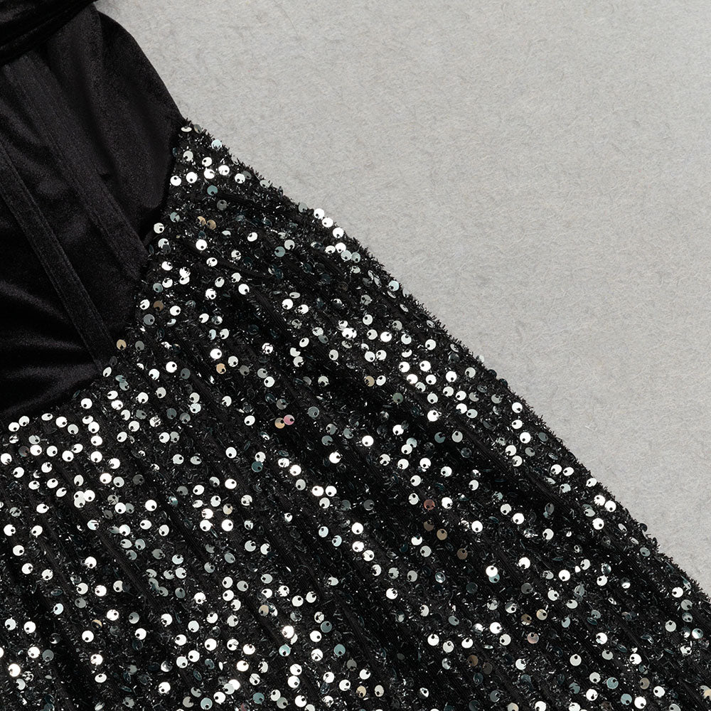 The soft velvet fabric drapes beautifully, while the sparkling sequin details add a touch of glamour. Perfect for any special occasion, this dress will make you feel confident and stylish.