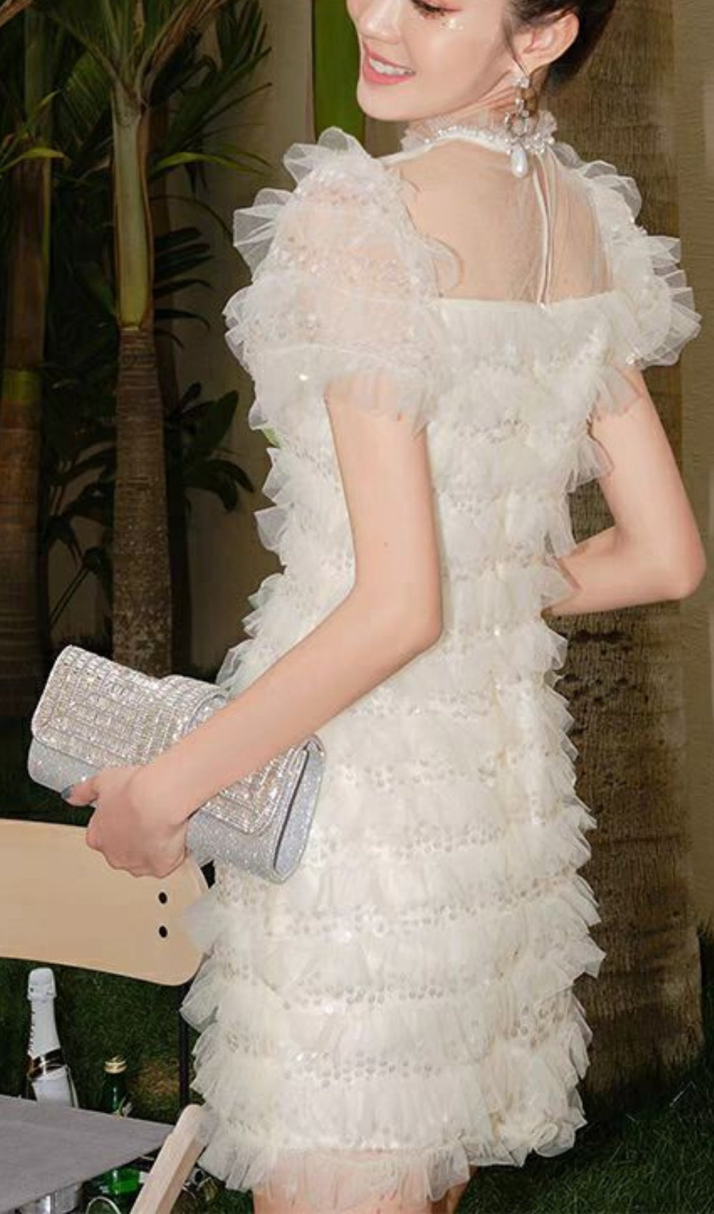 This Dream Sequins Cascade Mini Evening Dress ensures a memorable appearance. Its dreamy sequins cascade along its length, complemented by the mini hemline for a slightly playful vibe. Show up to any occasion looking fashionable and special in this one-of-a-kind dress.