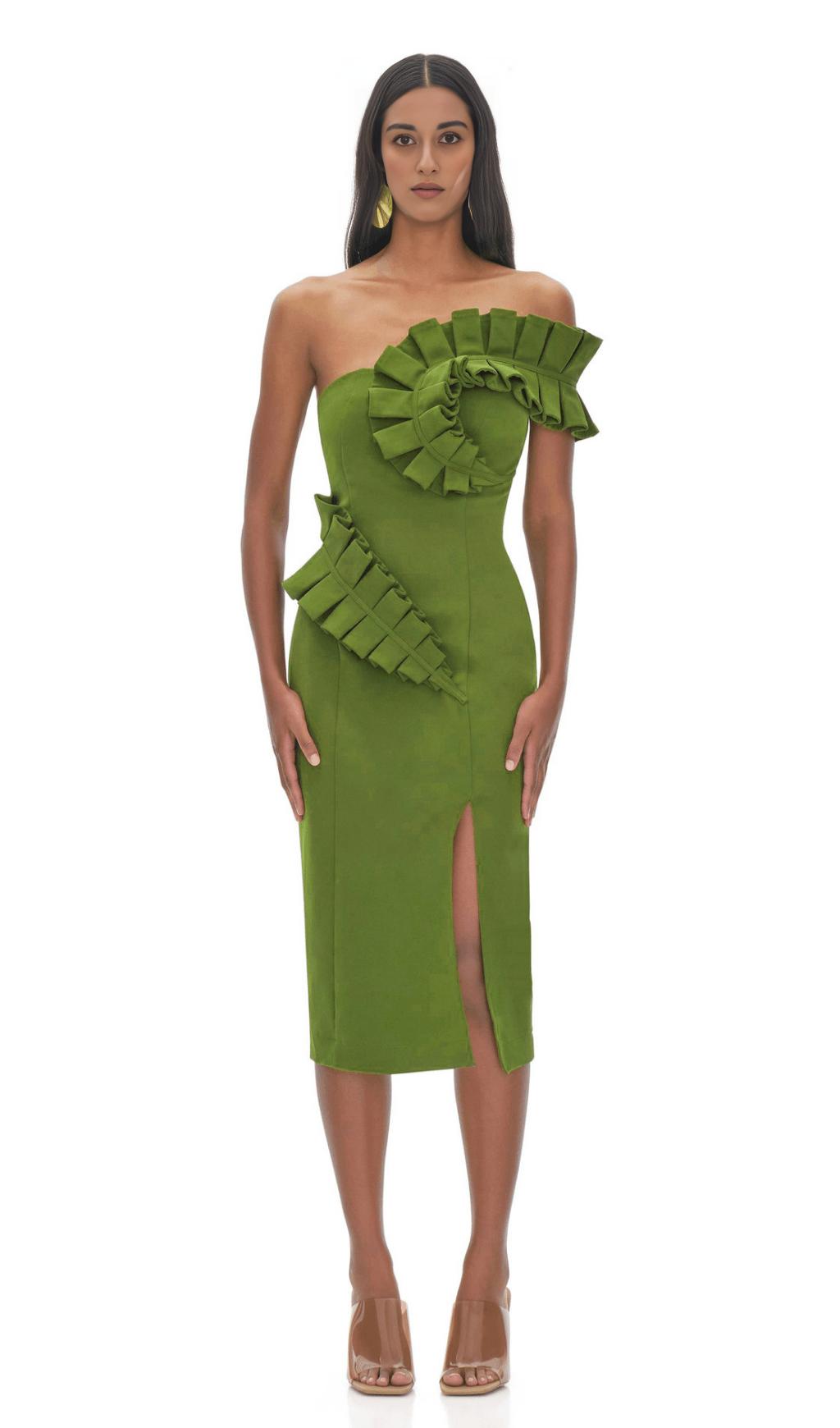 • Product design points: The large pleated leaves and irregular skirt design make this dress stand out from the crowd. It adds a unique and eye-catching element to your outfit.