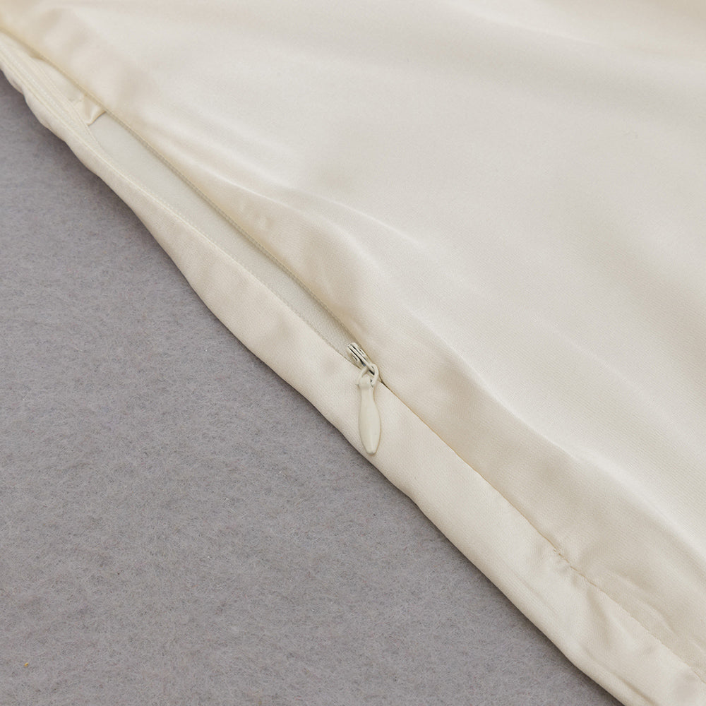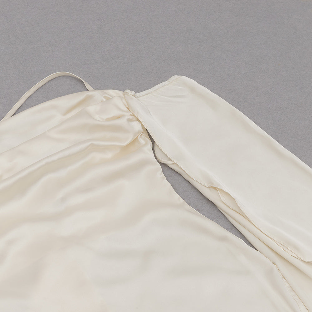 APRICOT SHOULDER RUCHED SATIN DRESS