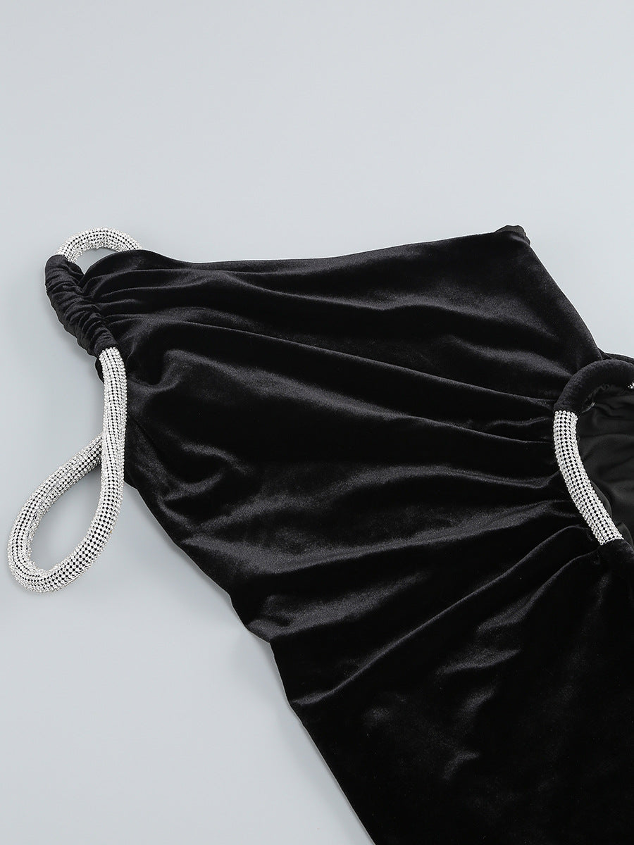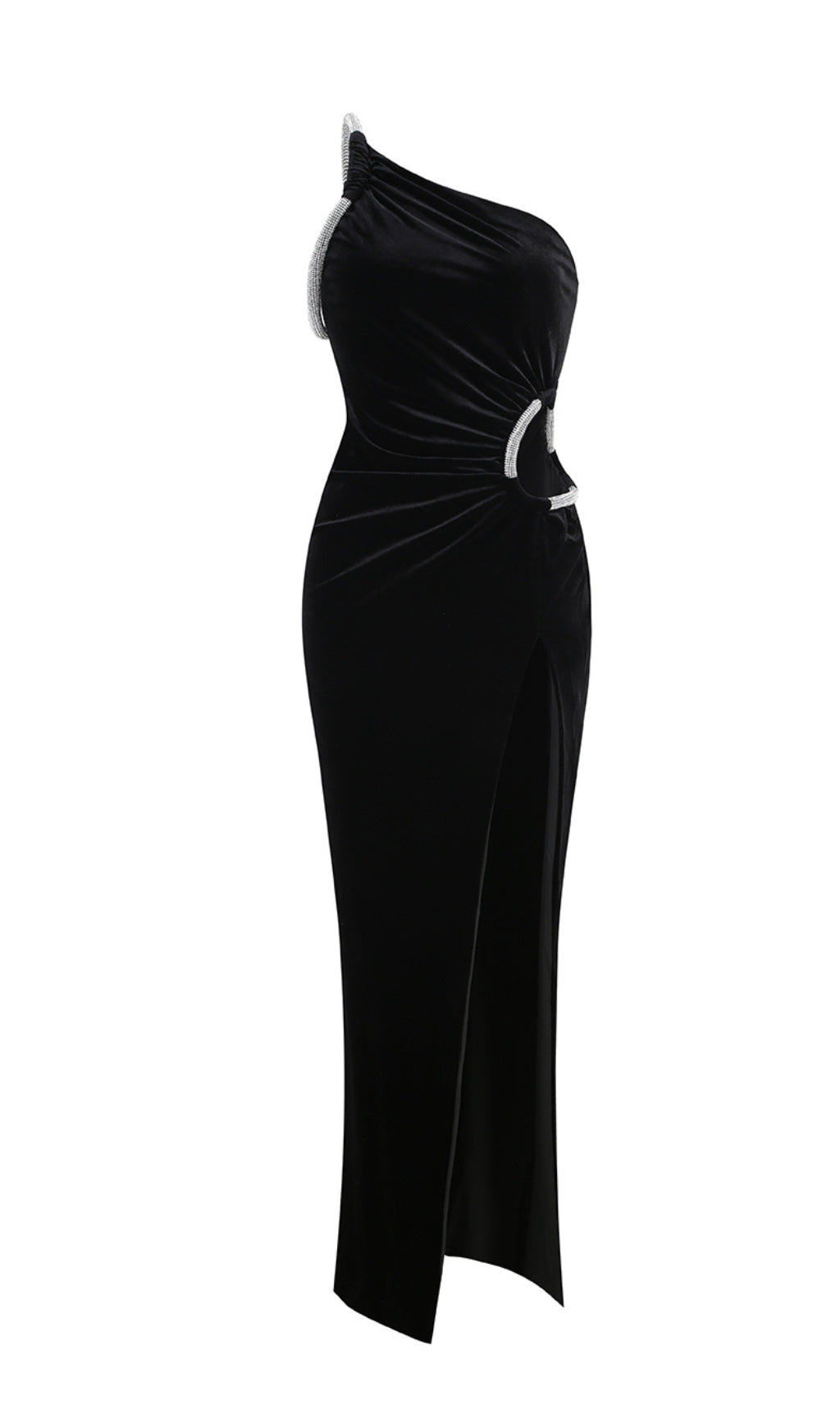 ABIBA BLACK HOLLOWOUT SLIT MAXI DRESS