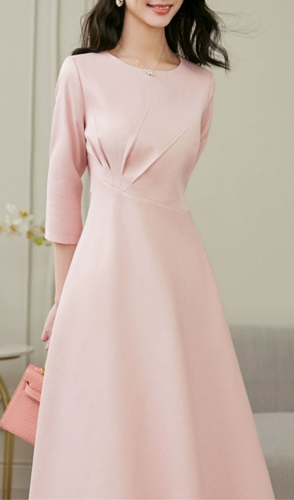 ELEGANT PINK LONG SLEEVE MIDI DRESS