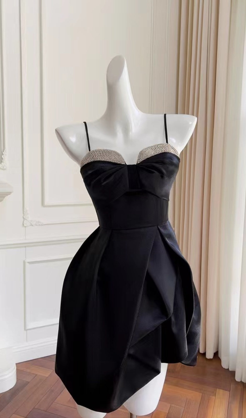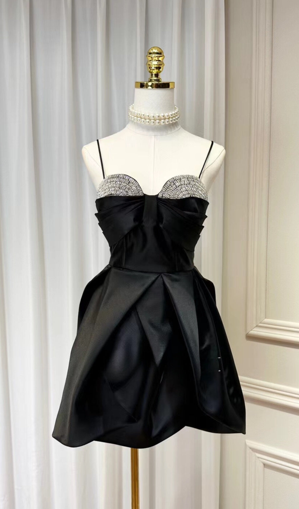 Elegant Suspender Mini Dress In Black