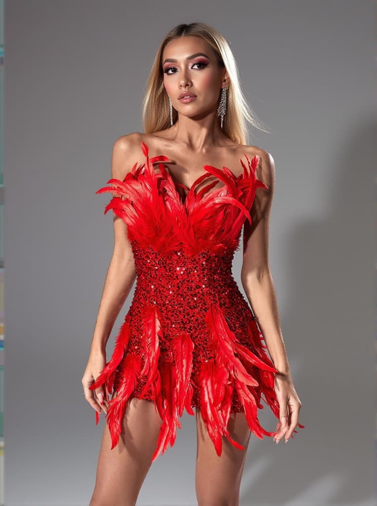 Notice: Please note due to the material of this dress, some feathers might fall. This is not a fault.