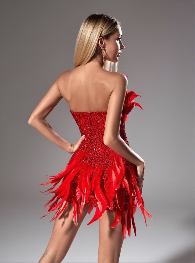 Eleri Strapless Sequin Feather Mini Dress