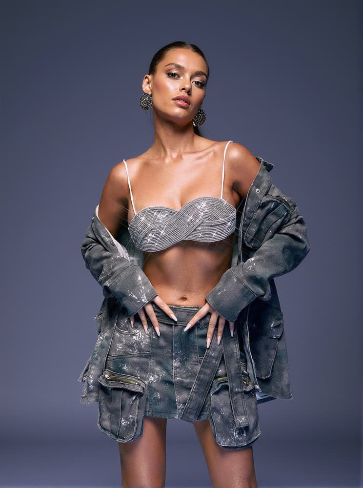 The Eloisa Crystal Top In Silver features dazzling crystal detailing, spaghetti straps, and a crop top design for added comfort. Crafted from high quality materials, it is sure to make you sparkle at any special occasion.