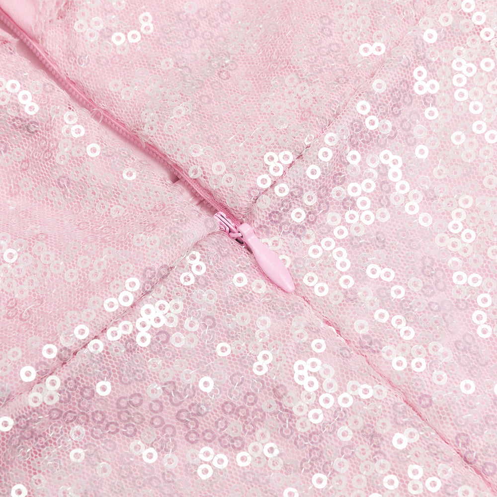 The stunning pink color and ruffle trim add a touch of femininity, while the high slit and sequin details bring a touch of glamour. With its figure-flattering silhouette, this dress is both stylish and sophisticated. Perfect for making a statement and turning heads.