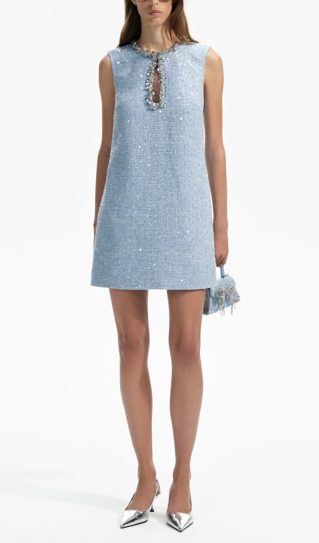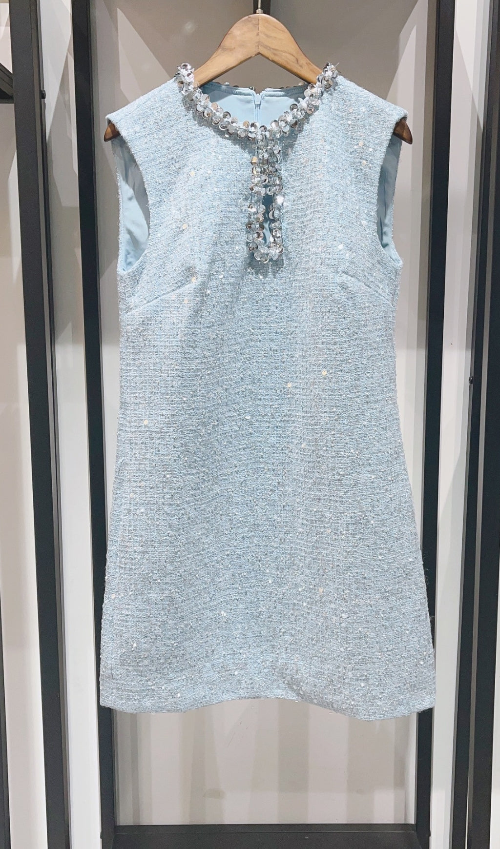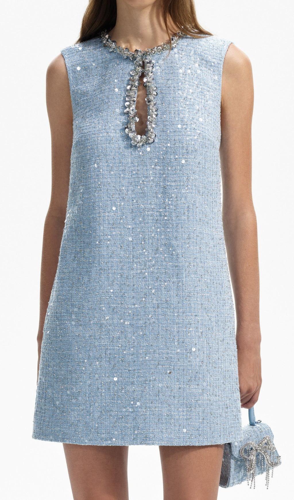 ADELLE BLUE EMBELLISHED BOUCLÉ MINI DRESS