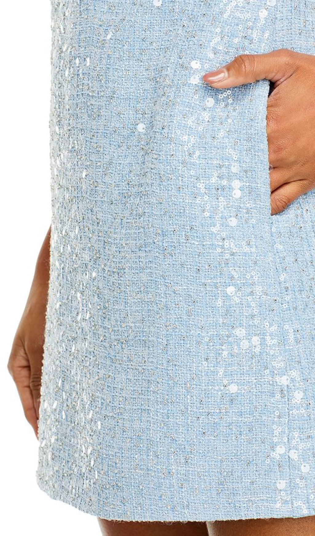 The intricate embellishments on the soft bouclé fabric make this dress a unique and stylish choice for any occasion. Be the life of the party in this mini dress that exudes confidence and playful charm.