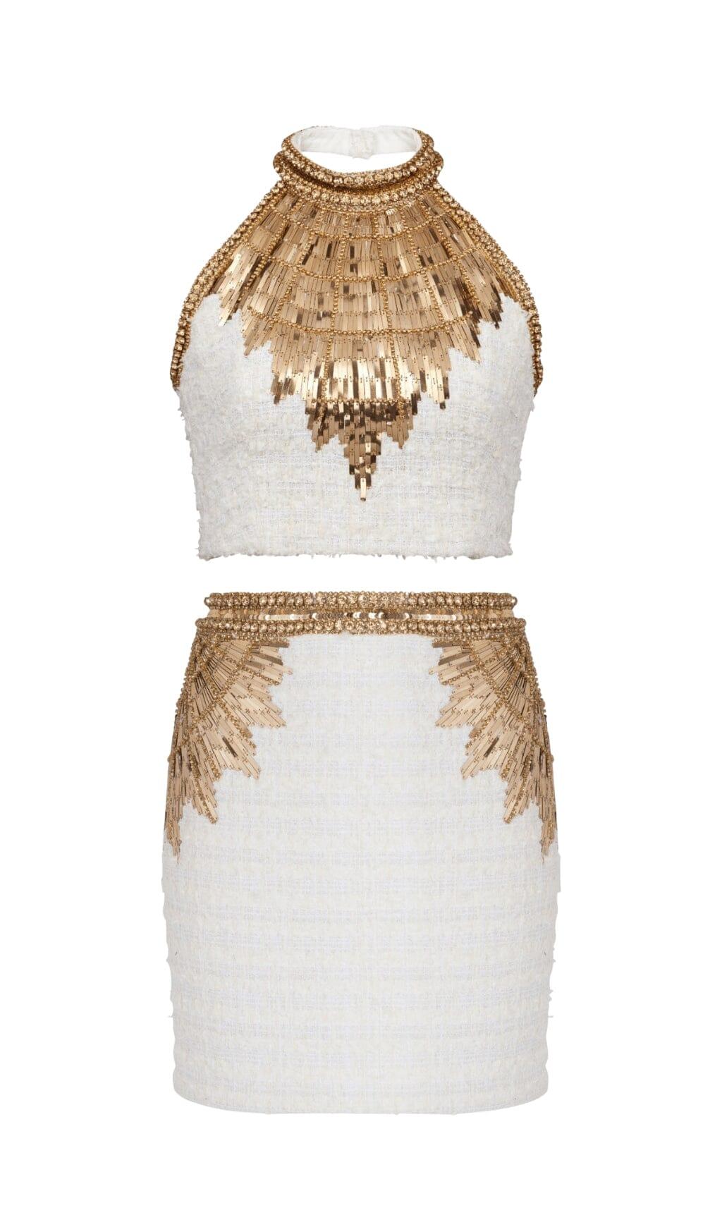 EMBELLISHED CROP TWO PIECE SUIT