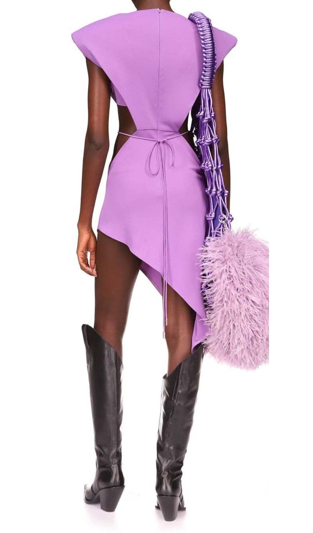 EMBELLISHED CRYSTAL MIDI DRESS IN LAVENDER