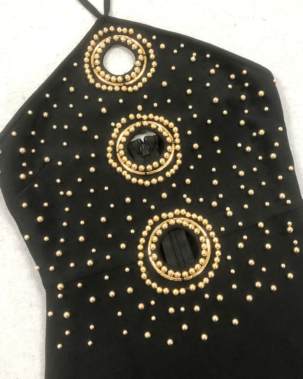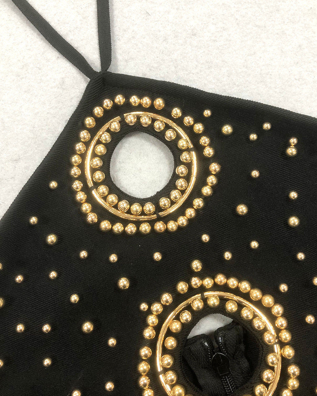 Effortlessly elegant and stylish, our embellished cut-out halter maxi dress in black is the perfect addition to your wardrobe. Featuring intricate embellishments and a chic cut-out design, this dress will make you stand out in any occasion. Plus, the halter neckline flatters any body type. Get ready to turn heads with this stunning dress.