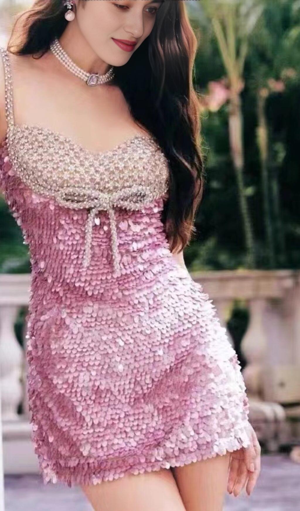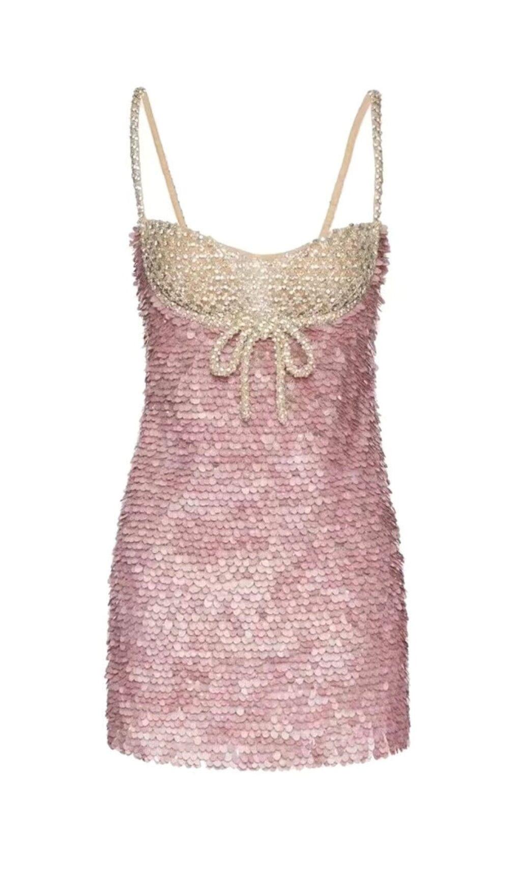 EMBELLISHED SEQUIN MINI DRESS IN PINK