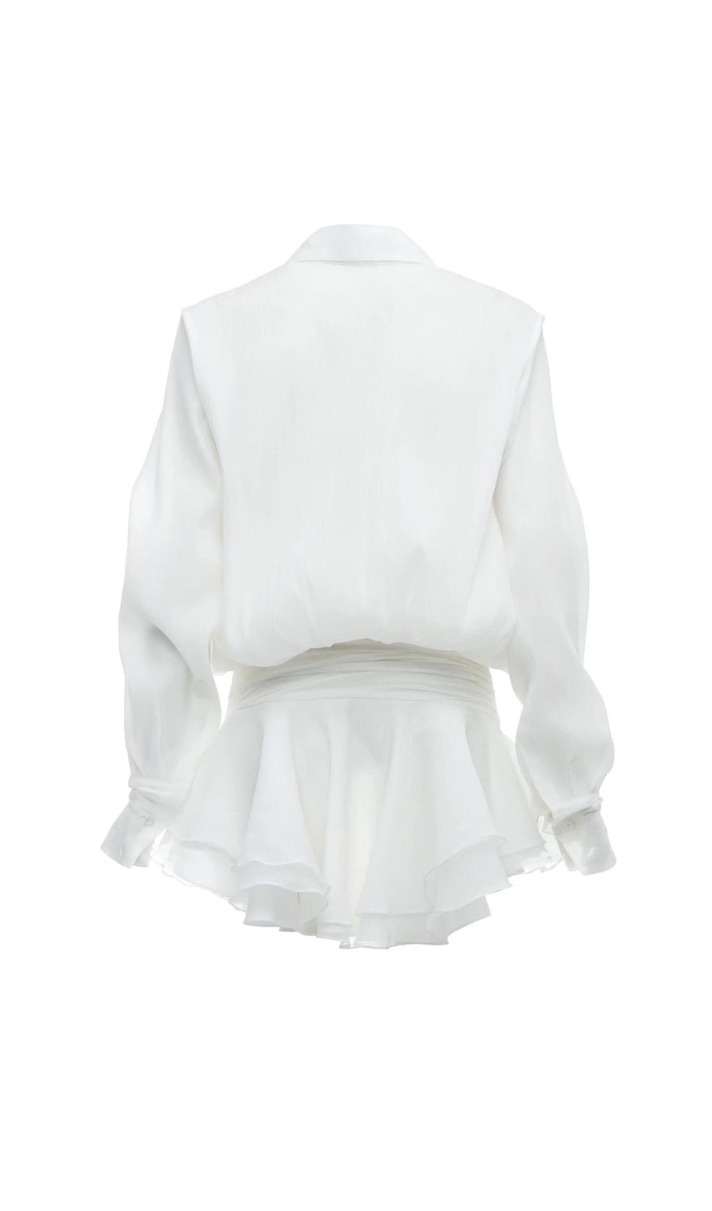 EMBER RUCHED RUFFLE MINI DRESS IN WHITE