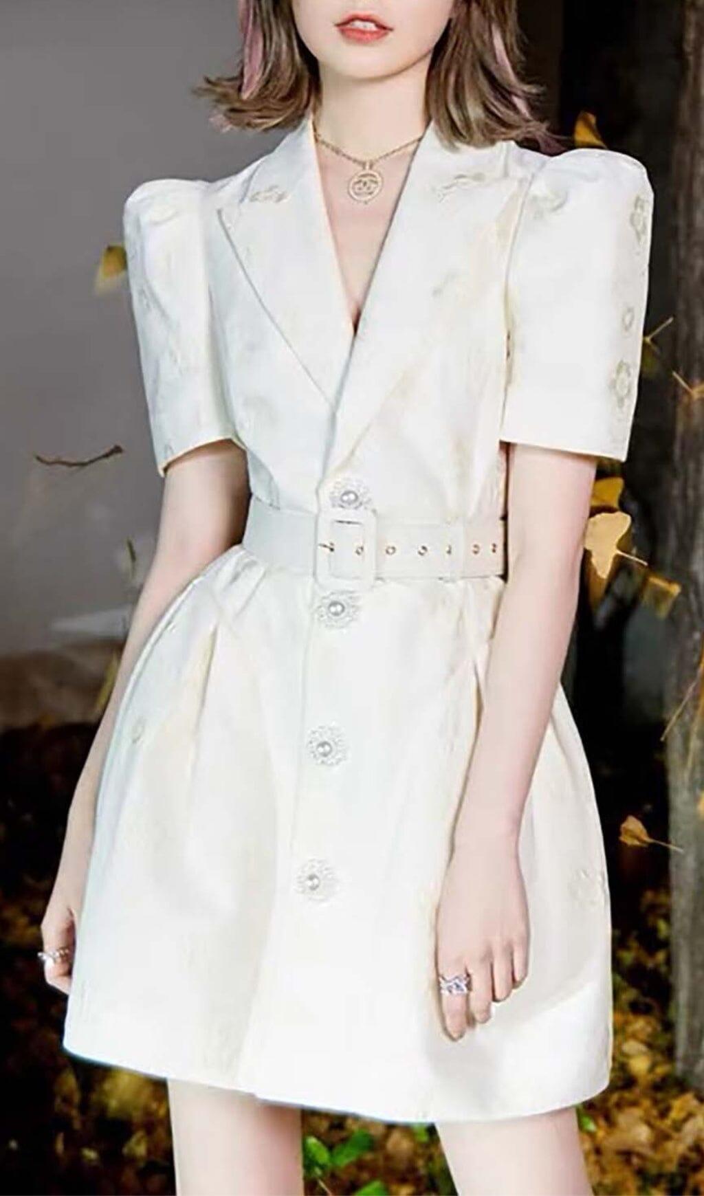EMBROIDERED BUTTON JACKET DRESS IN WHITE