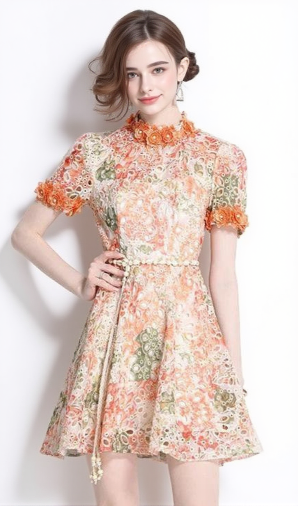 This mini dress features intricate embroidered hollow floral puff sleeves, adding a touch of elegance to your wardrobe. Made with high-quality materials, it provides comfort and style for any occasion. Upgrade your fashion game with this must-have dress.