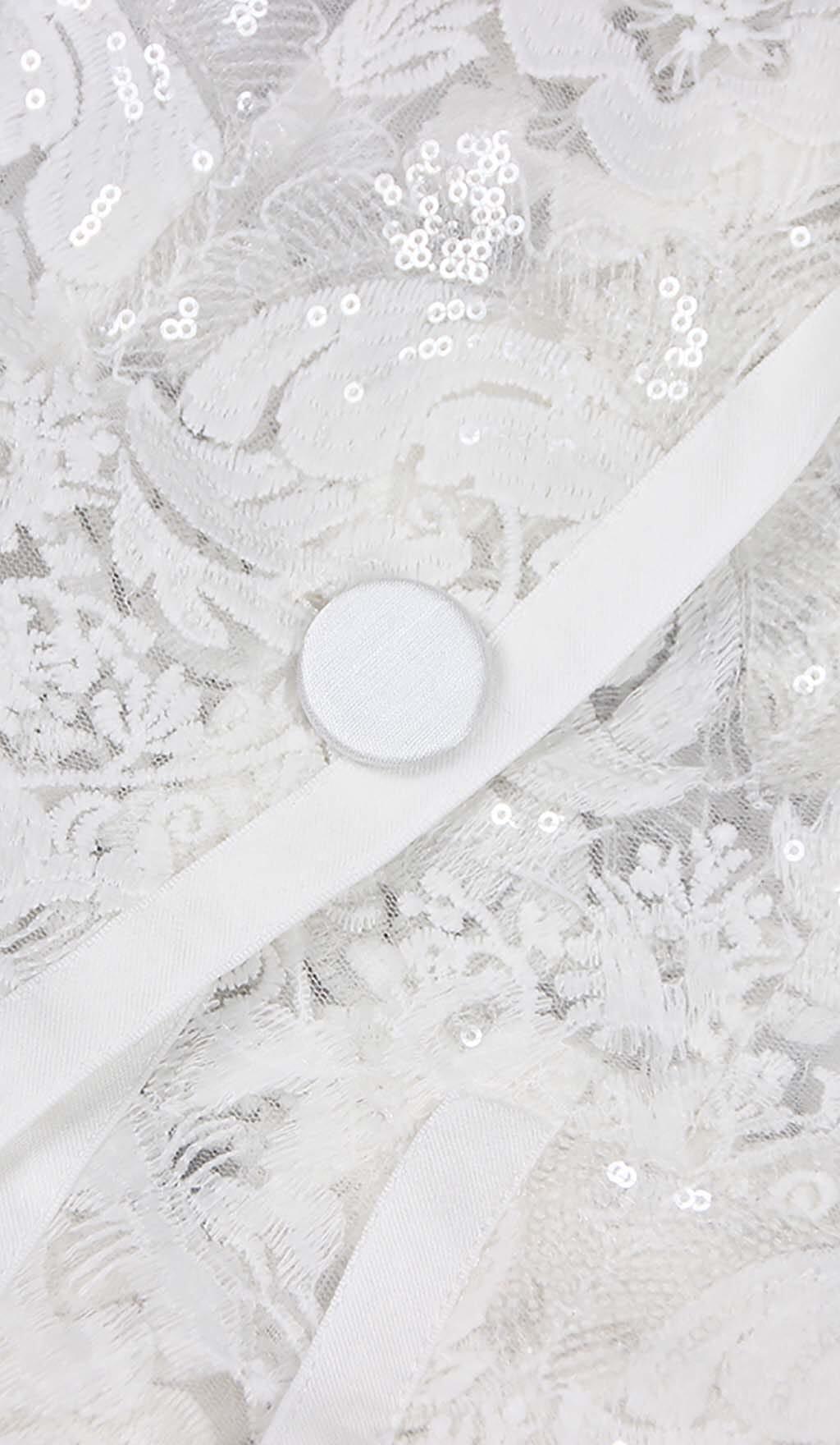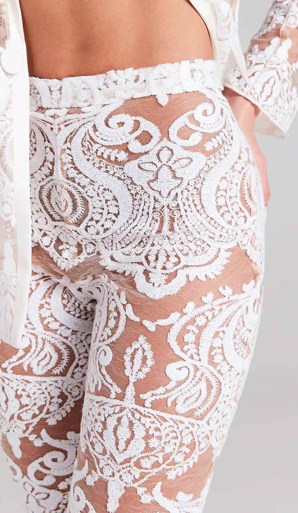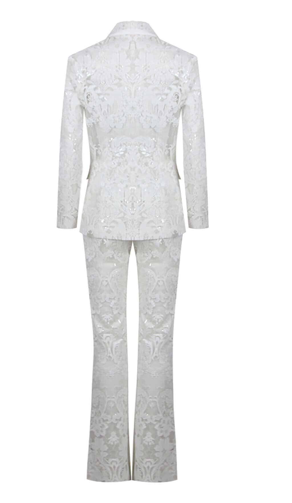 EMBROIDERED LACE MESH JACKET SUIT IN WHITE