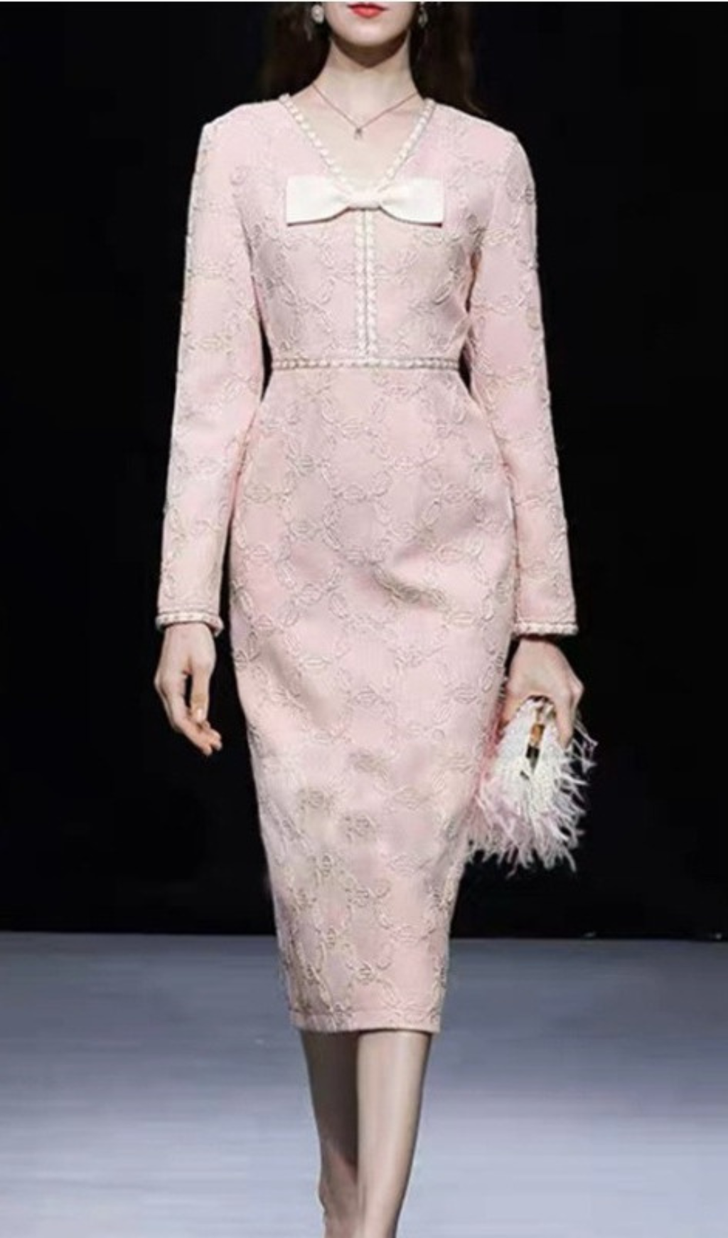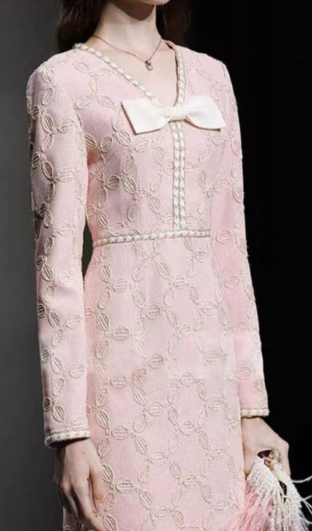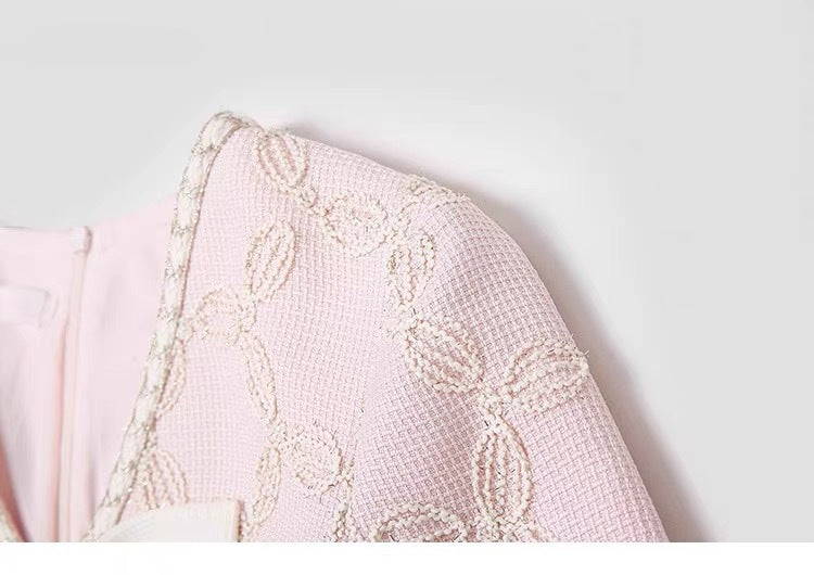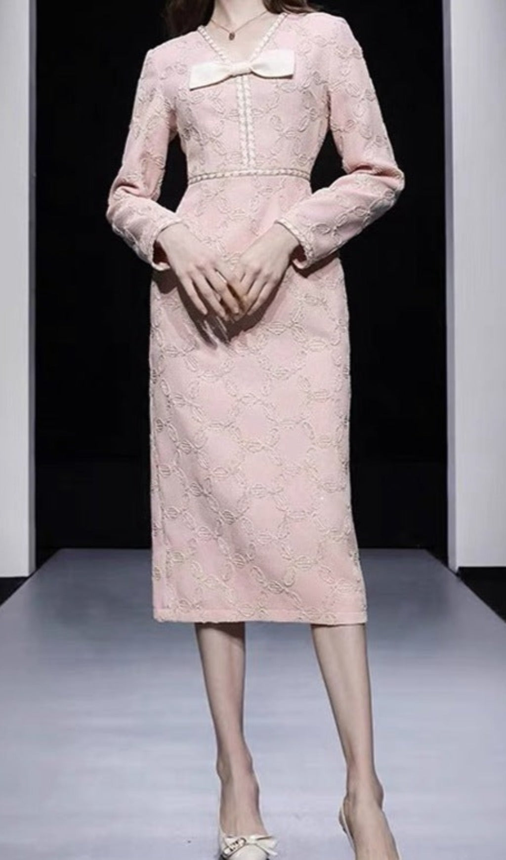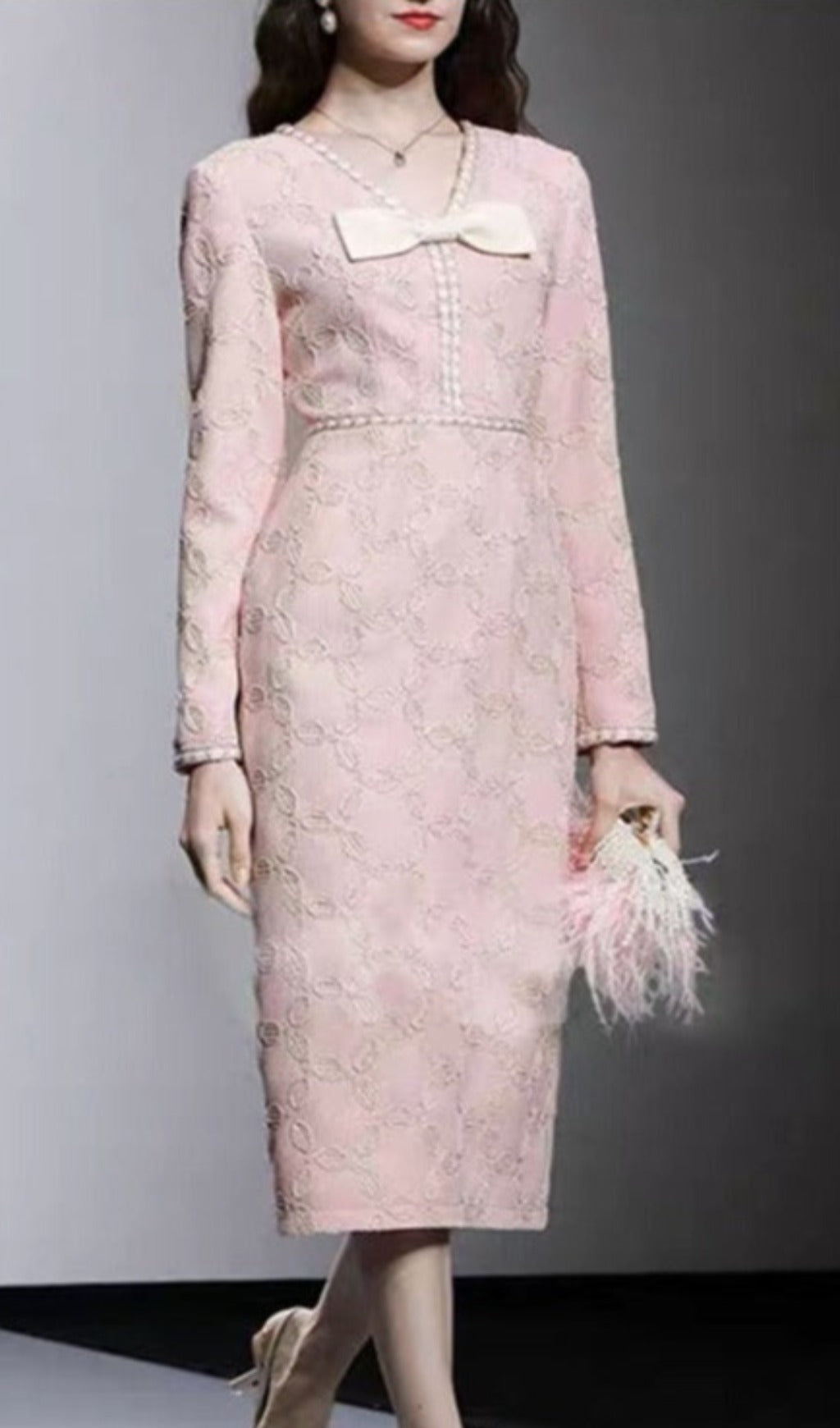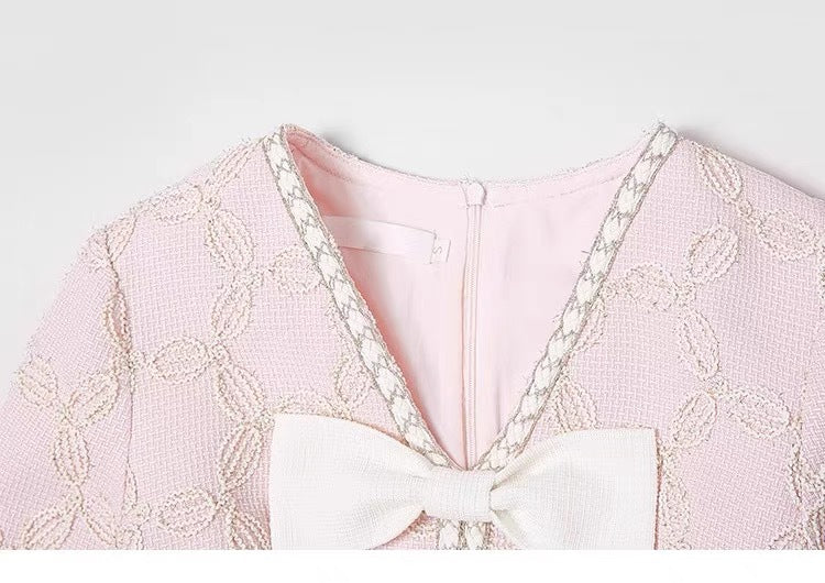 Expertly crafted with delicate embroidery, this midi dress features a flattering V-neck and elegant bow detail. The perfect blend of style and sophistication, it is sure to make a statement at any event.