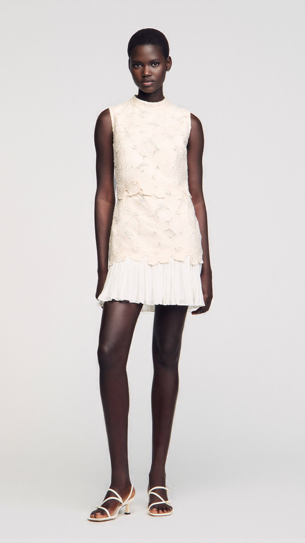 EMBROIDERY BACKLESS GUIPURE MINI DRESS IN ECUR