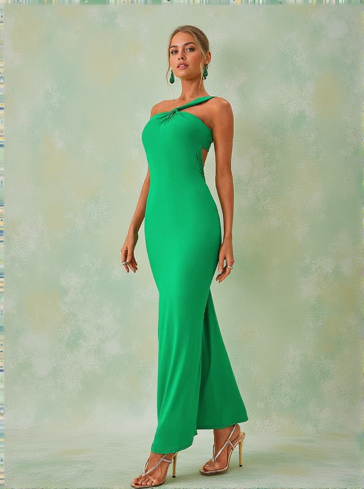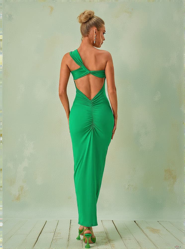 Emi One Shoulder Backless Maxi Dress In Green