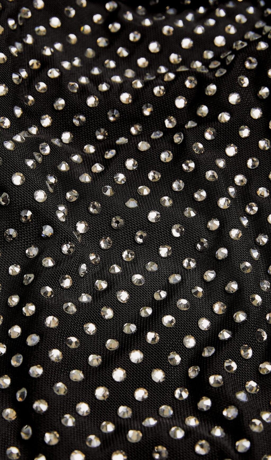 ENBELLISHED MESH MIDI DRESS IN BLACK