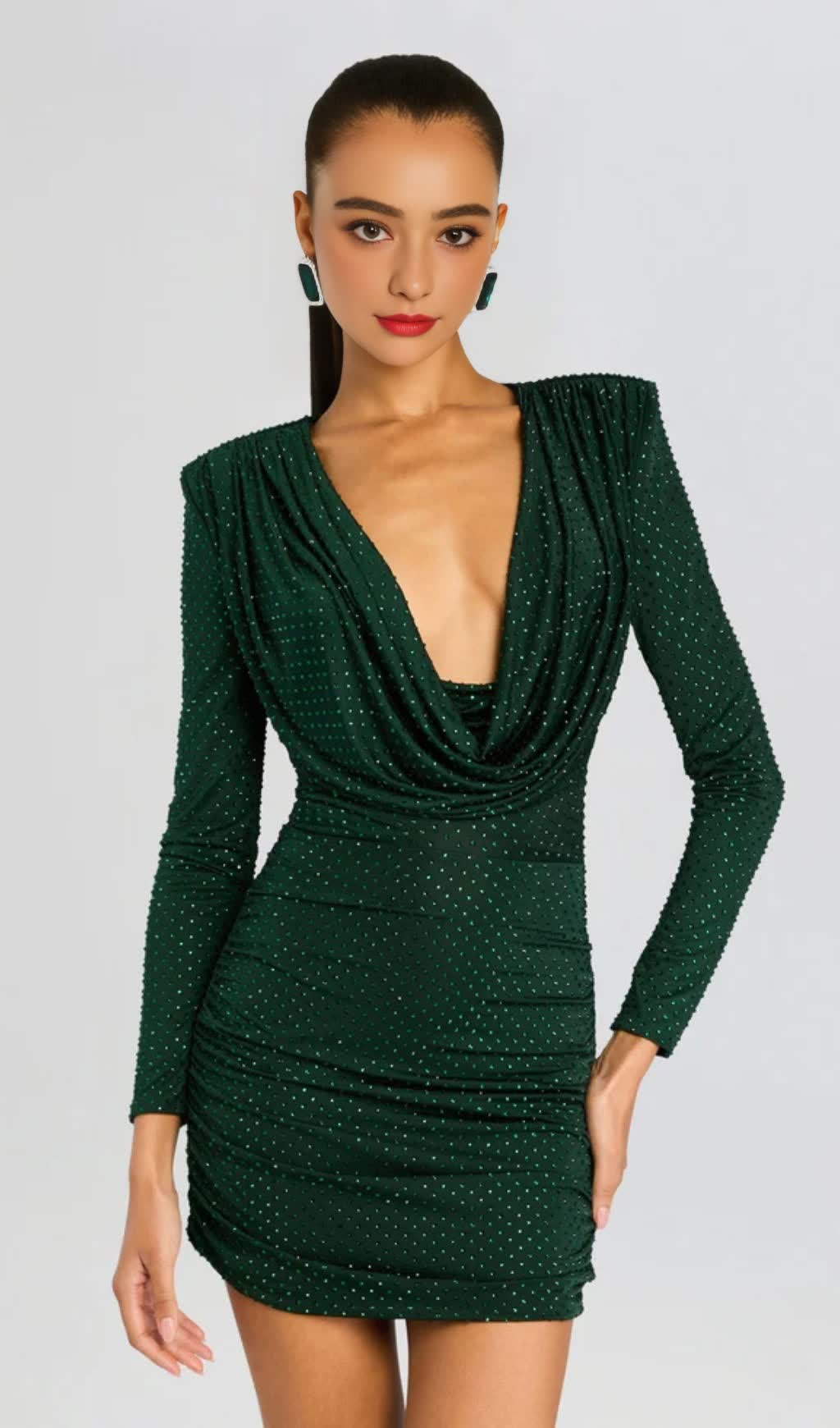 Erix Crystal Embellished Draped Mini Dress in green