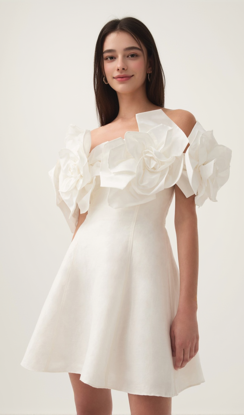 Etta flower strapless mini dress in ivory