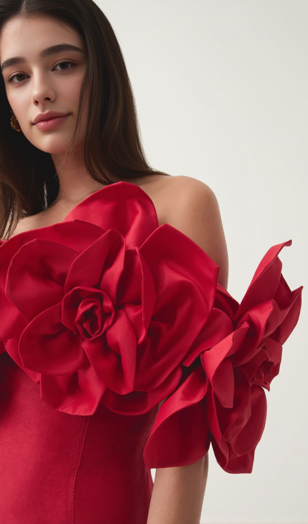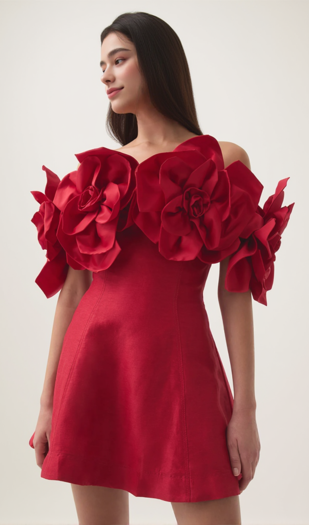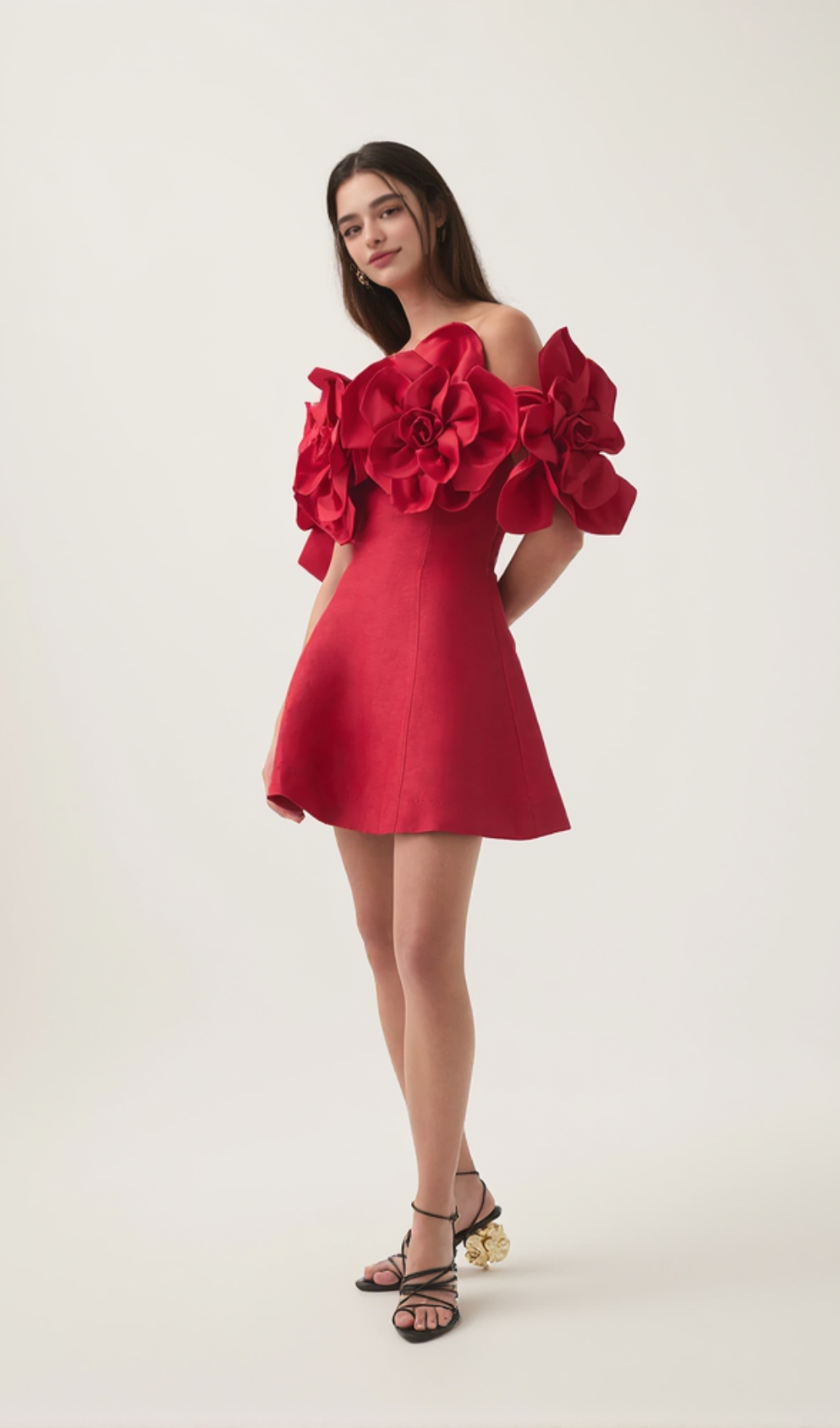 Expertly crafted, the Etta flower strapless mini dress in red is a stunning addition to any wardrobe. With its vibrant color and elegant strapless design, this dress is perfect for any special occasion. Made with high-quality materials, this dress offers both comfort and style in one beautiful package.