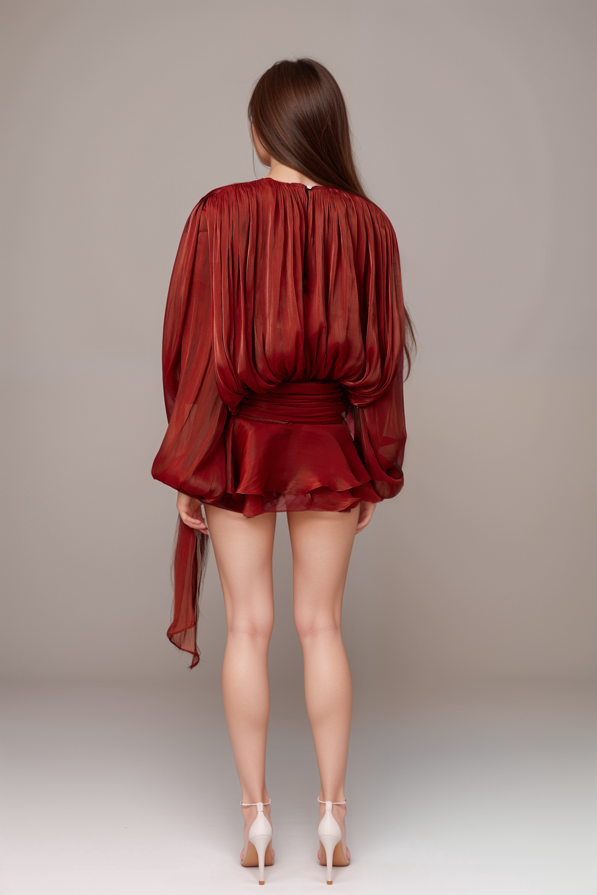 fully-pleated ruffled mini dress in Red