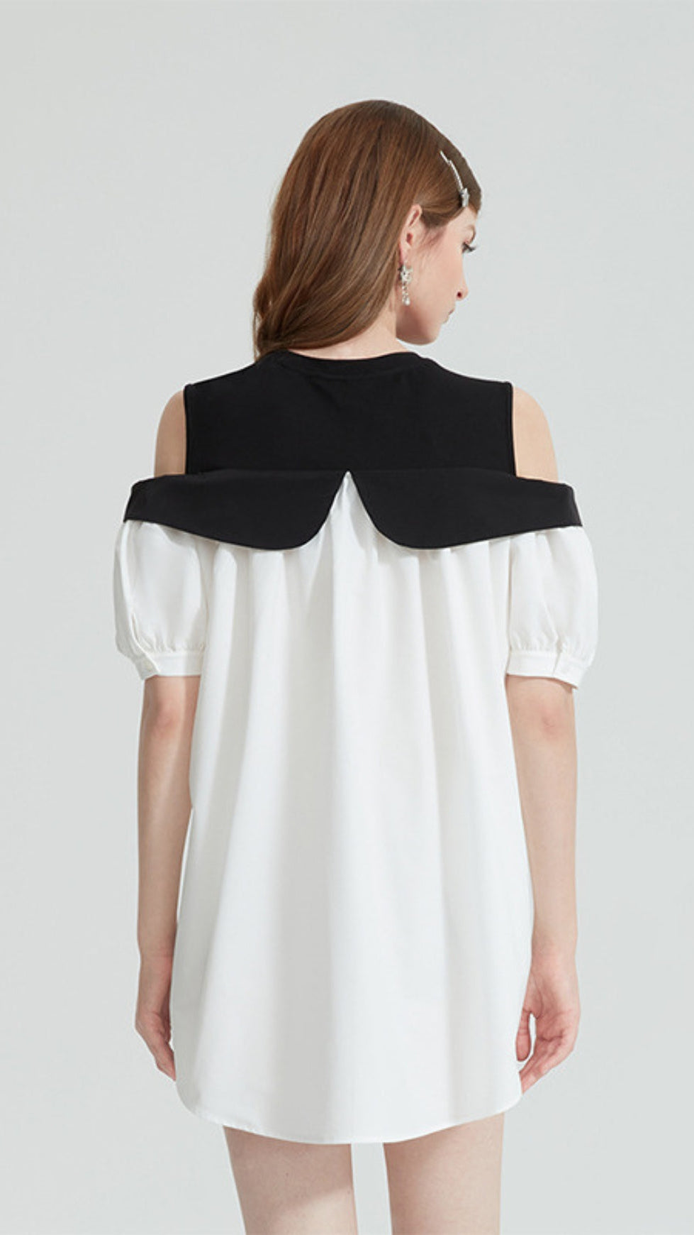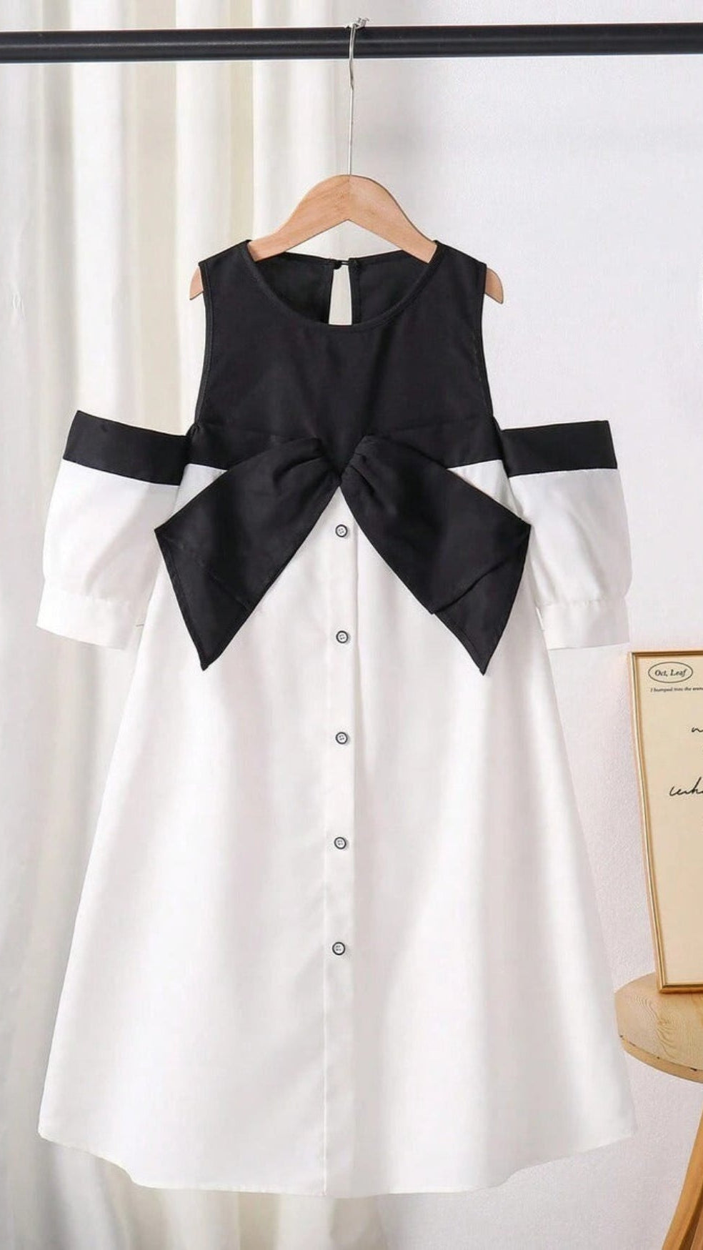 EVELYN OFF-SHOULDER CONTRAST BOW MINI DRESS