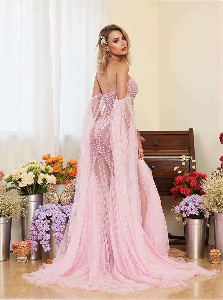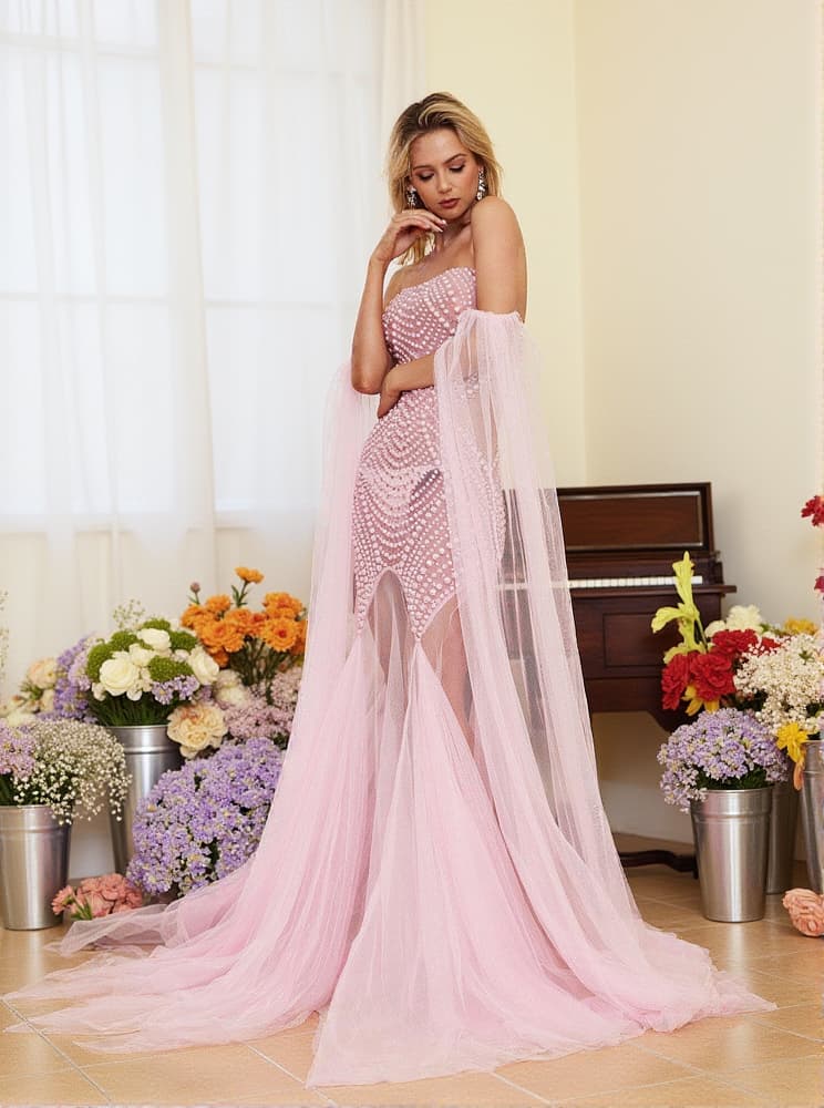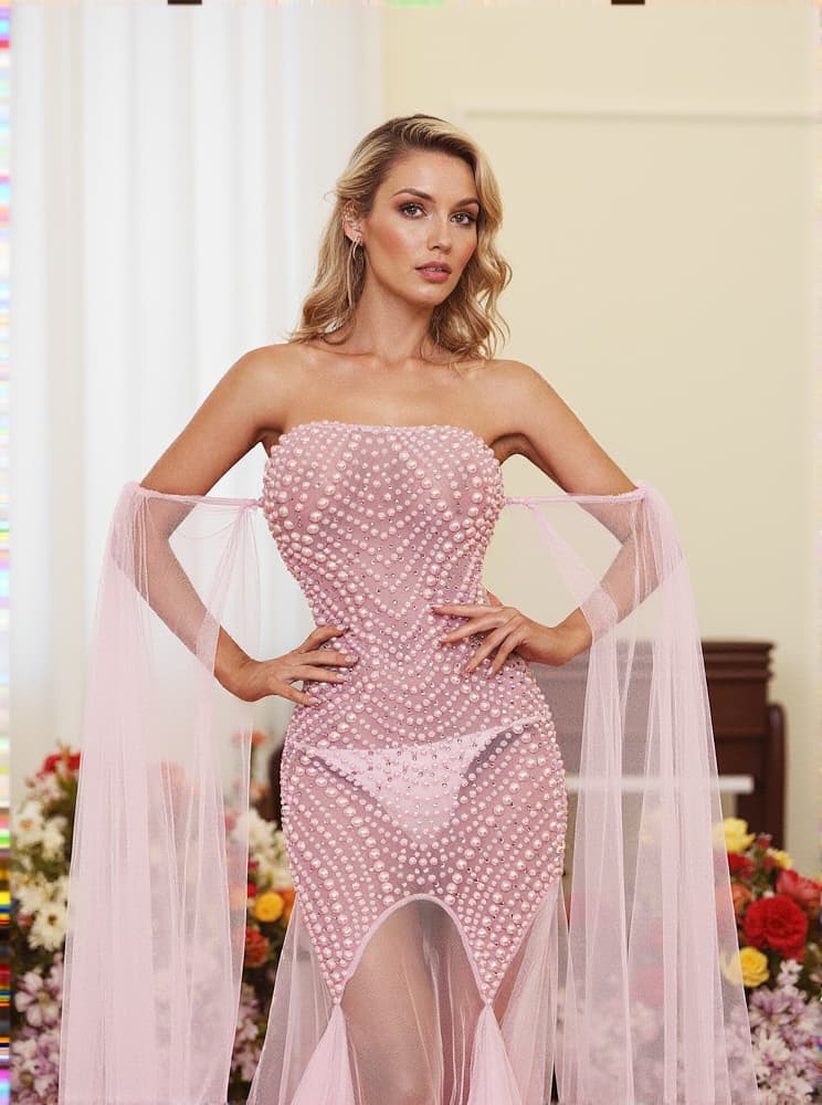 Indulge in pure luxury with our Evren Pearl Embellished Tulle Maxi Dress. This exquisite piece features delicate pearl embellishments and layers of elegant tulle that gracefully flow with every step. Elevate your style and make a statement at any event with this sophisticated and exclusive dress.