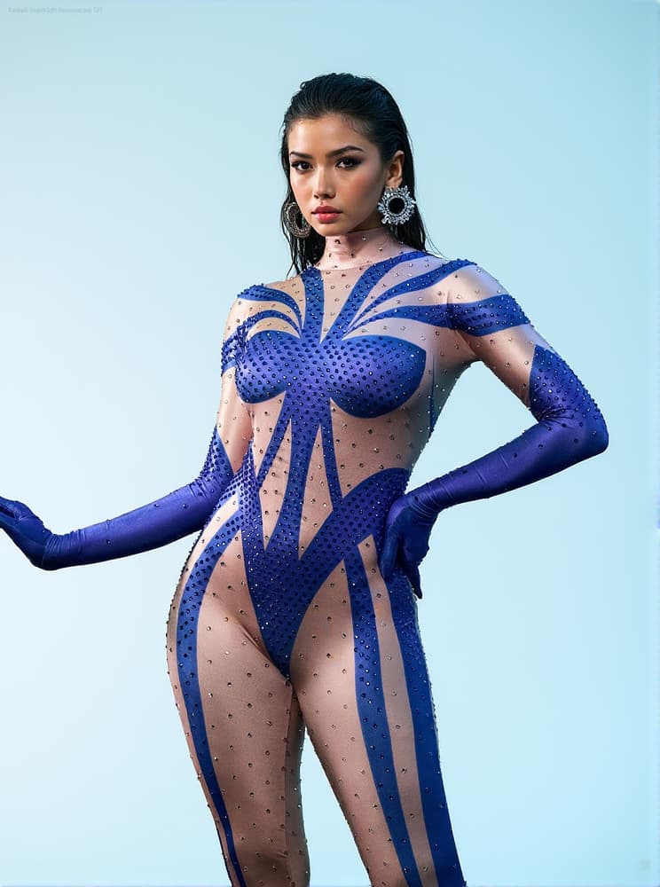 Indulge in luxury with our Fabian Rhinestone Printed Gloves Jumpsuit. This exquisite piece features dazzling rhinestone embellishments for a touch of glamour. Elevate your style and be the center of attention at any event. Perfect for the fashion-forward and sophisticated woman.
