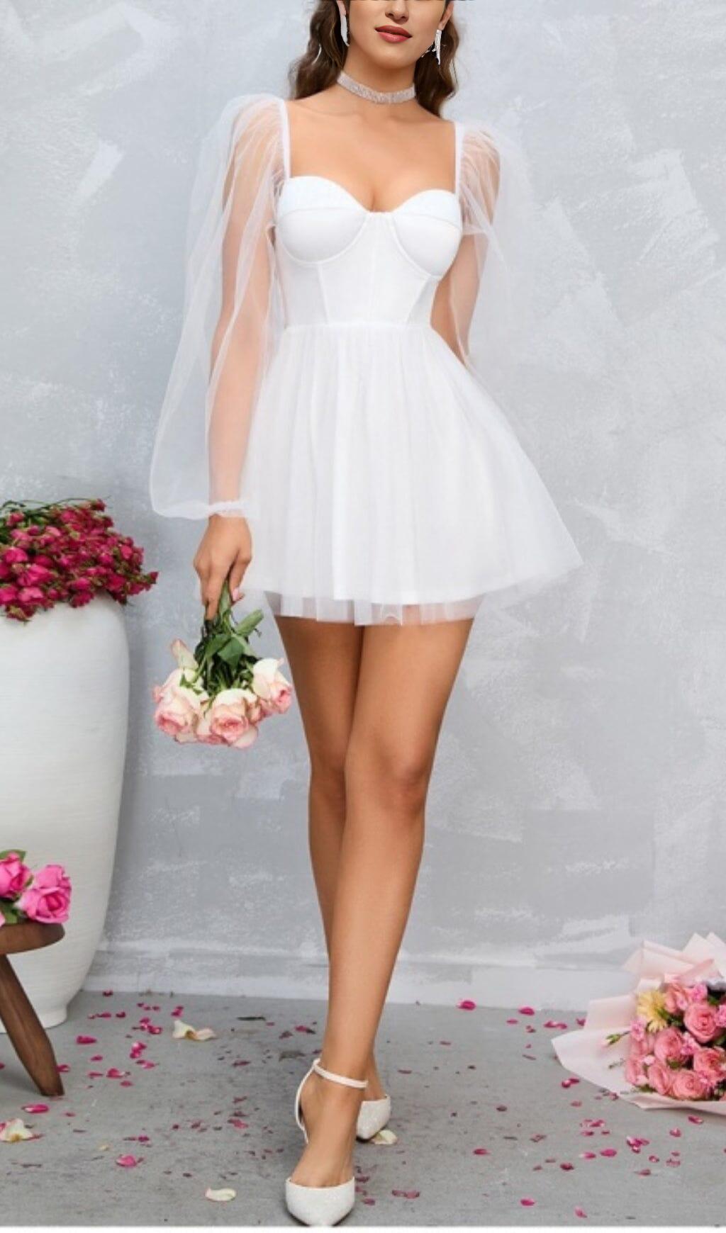 FAIRYTALE DREAM SHEER SLEEVE MINI DRESS WHITE