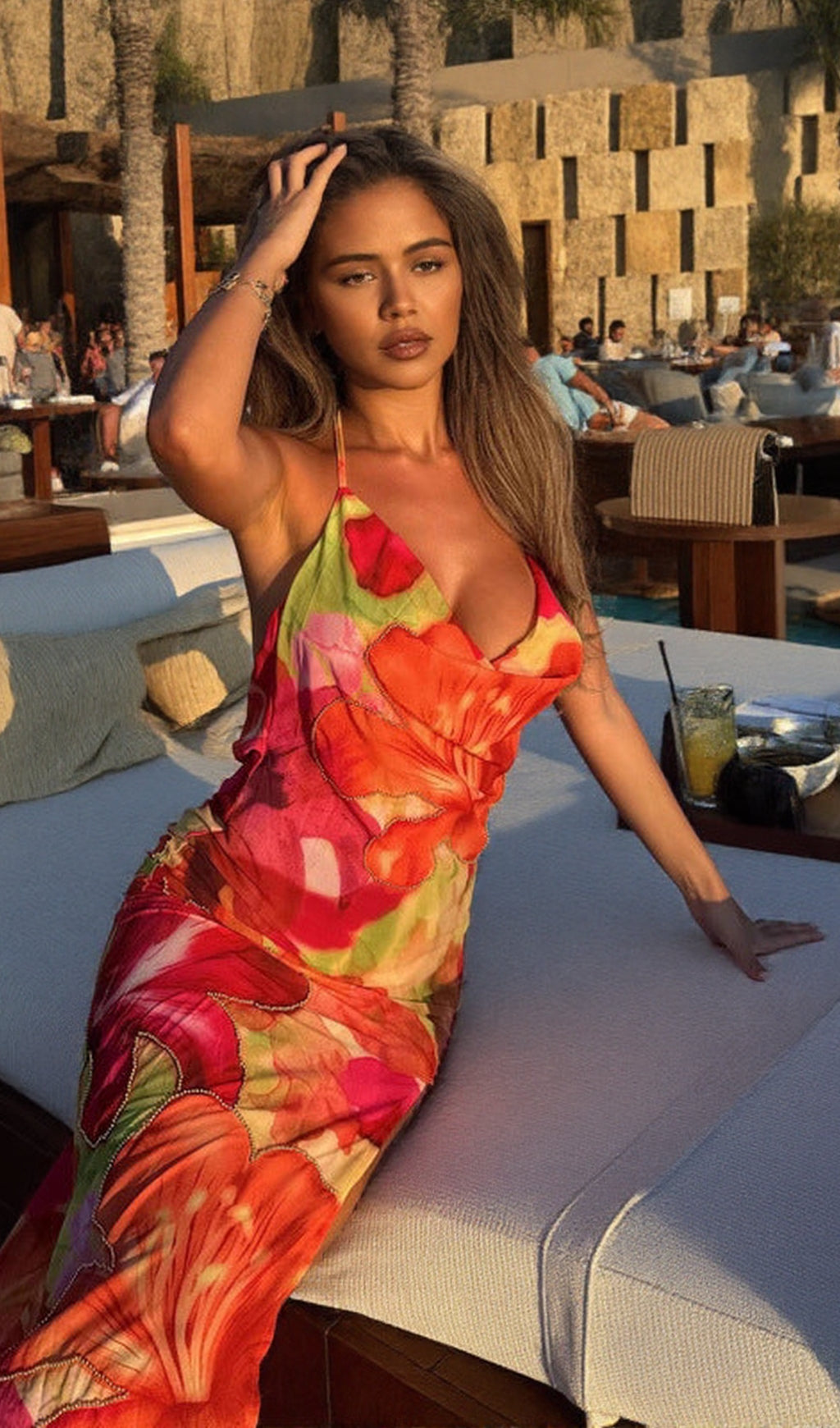 The Falling Tropical Bloom high slit Maxi Dress combines elegant design with a touch of tropical flair. Crafted to flow gracefully, its high slit offers ease of movement and a subtle allure, perfect for warm-weather occasions. This dress enhances silhouette definition while providing comfort, making it an expert choice for stylish yet effortless dressing.