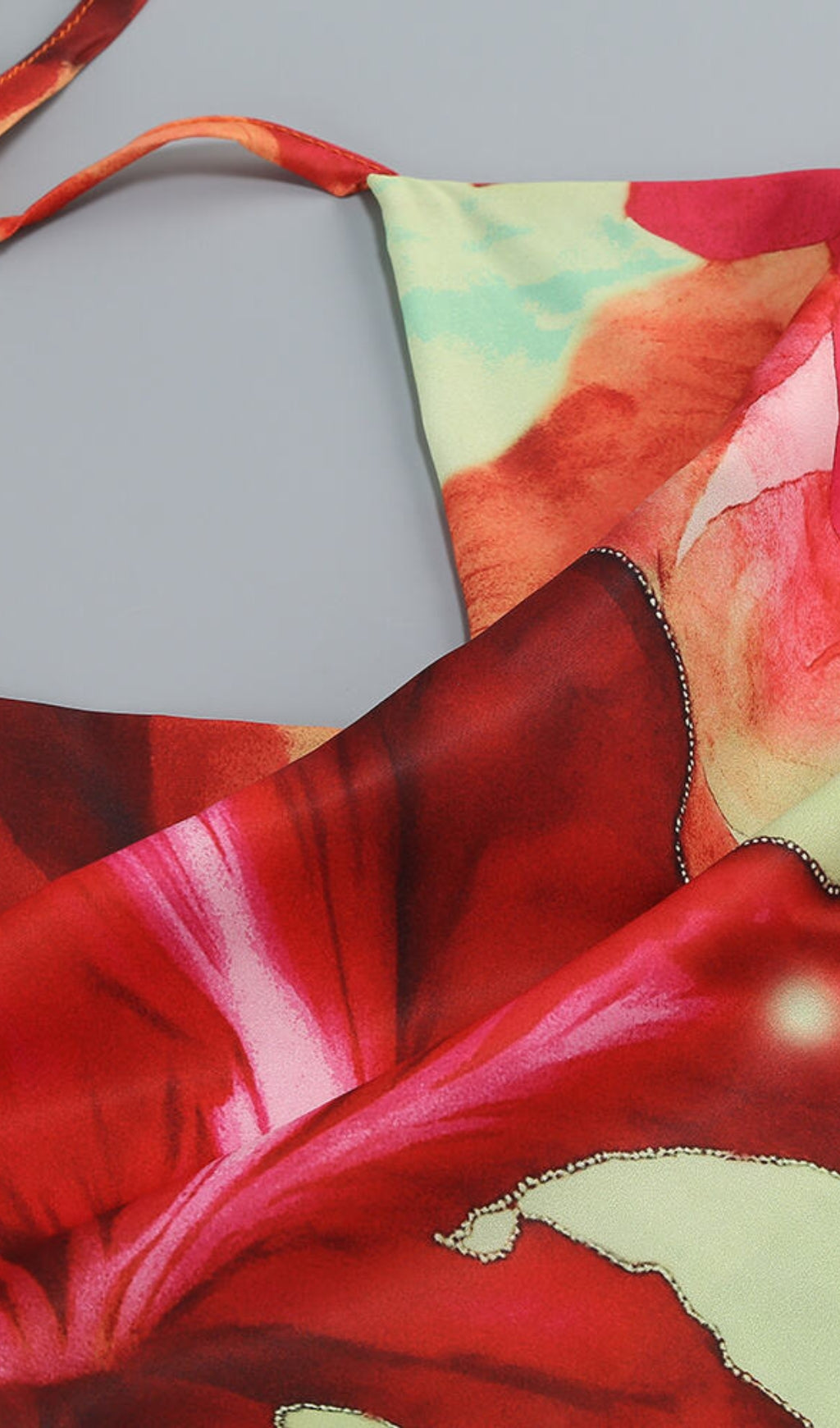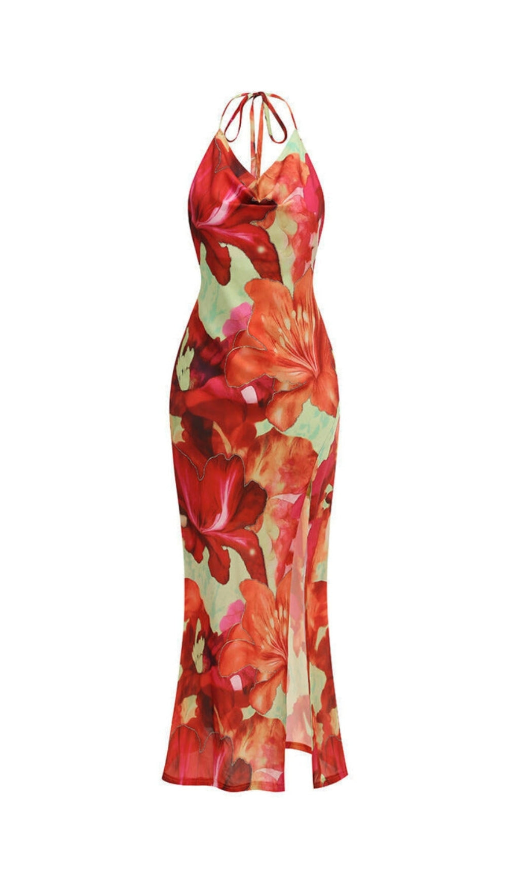 FALLING TROPICAL BLOOM HIGH SLIT MAXI DRESS