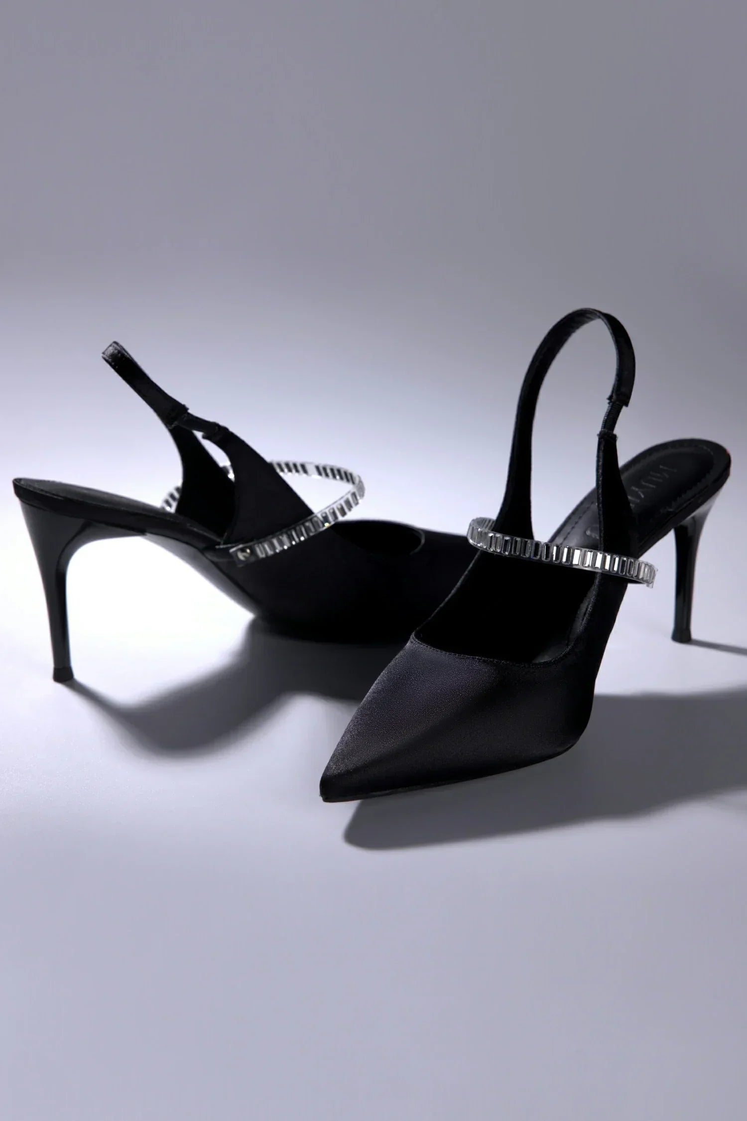 Step into sophistication with the Fatima Point Toe Chain Heels, designed to elevate your style and make a statement at any upscale event. These stiletto heels are crafted from premium materials that enhance your glamour, ensuring you dazzle every time you walk in.