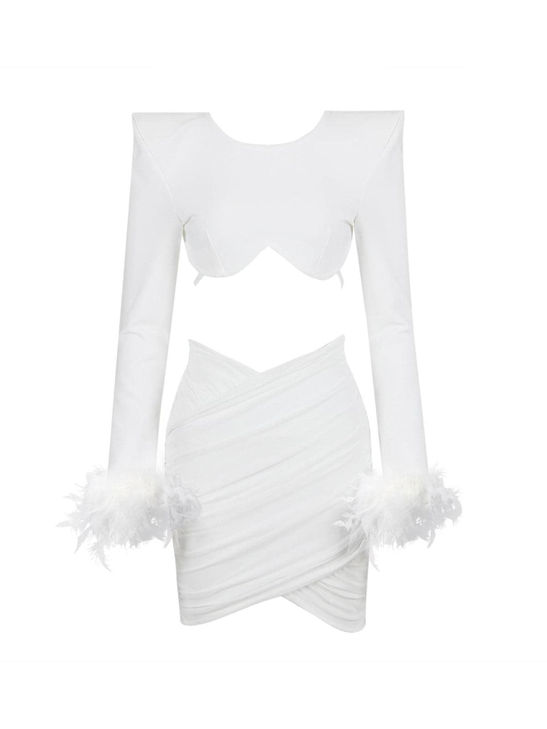 Fauna Long Sleeve Feather Mesh Bandage Set In White