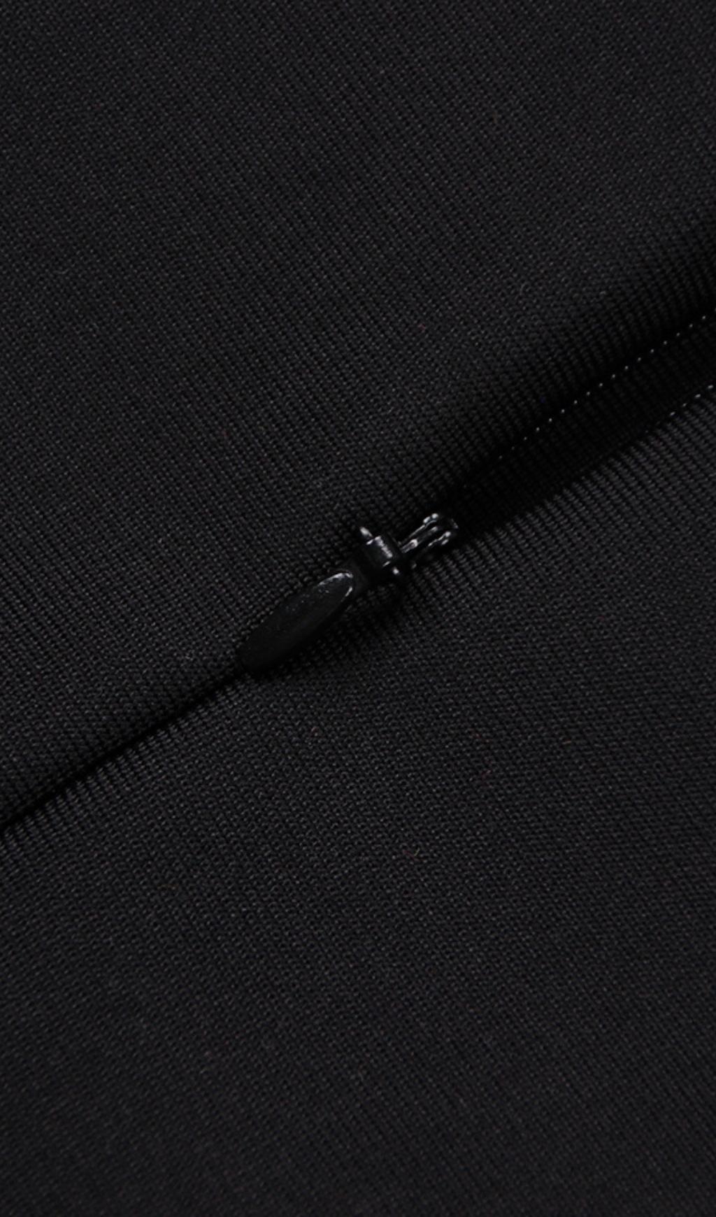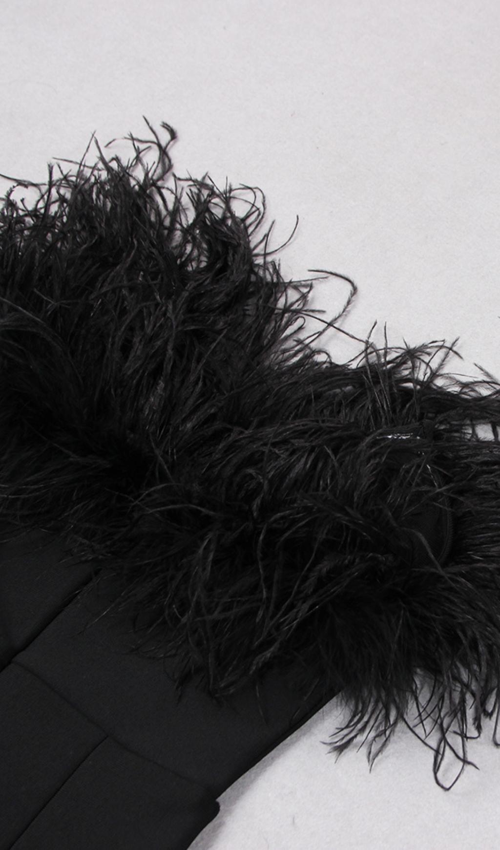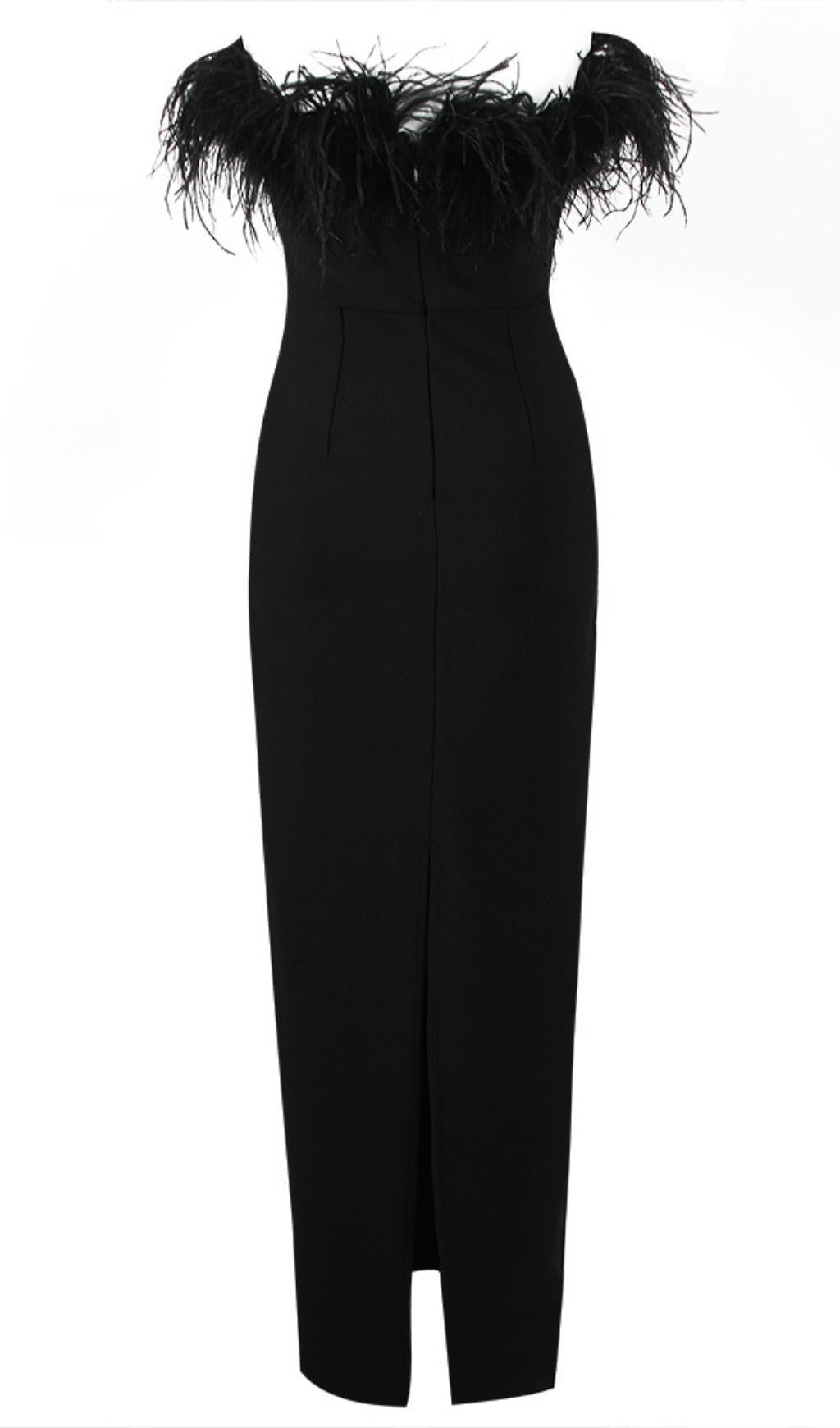 FEATHER BODYCON MAXI DRESS IN BLACK