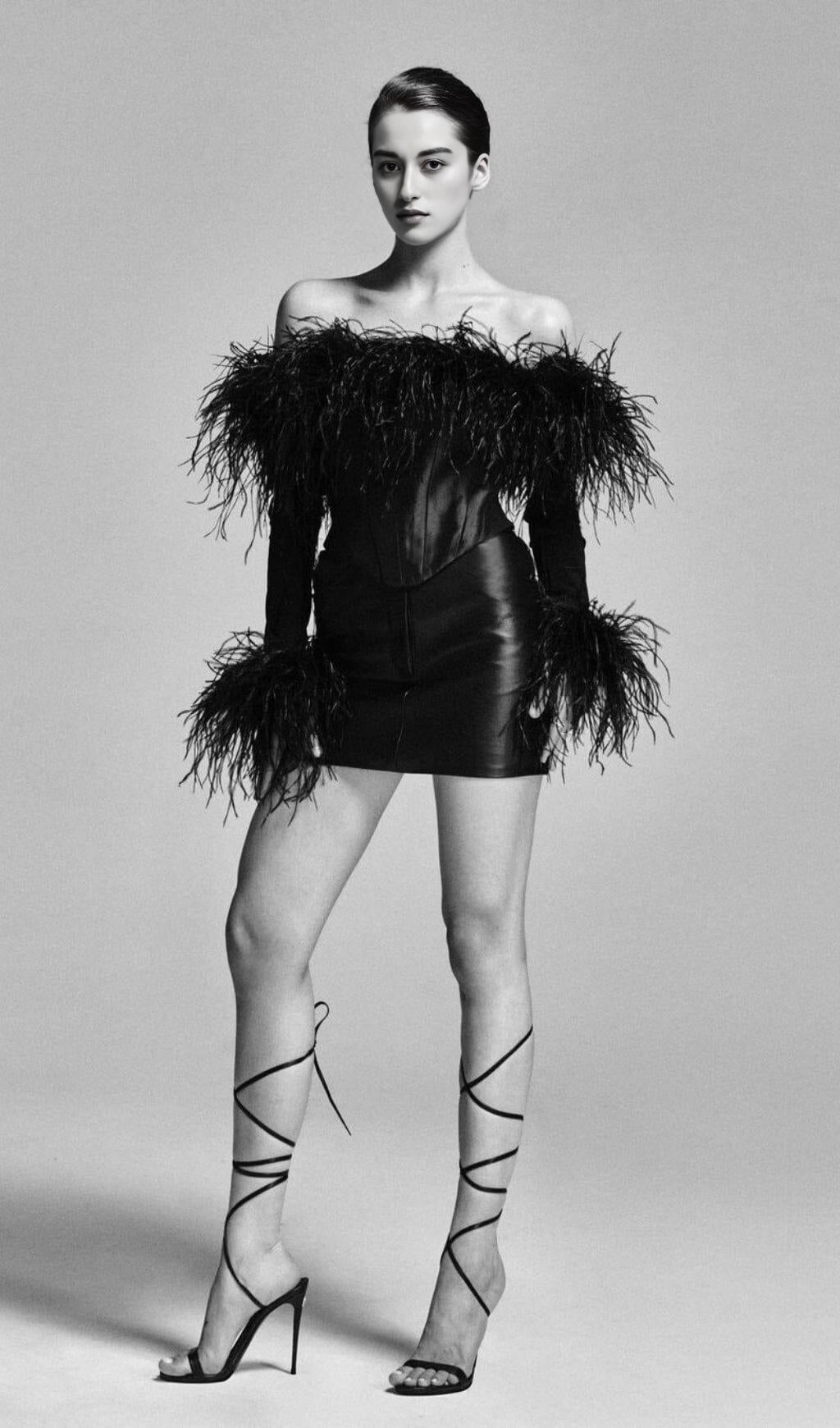 Introducing our stunning Feather Corset Mini Dress in Black, a truly unique and eye-catching piece that will make you stand out from the crowd. With its luxurious feather trim and delicate lace-up detail, this dress exudes glamour and sophistication.