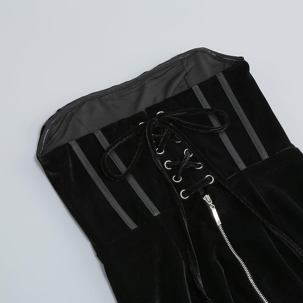 The dress features a corset-style bodice with lace-up detailing, designed to cinch in your waist and create an hourglass silhouette. This unique feature sets it apart from other dresses and adds an element of seductive charm.