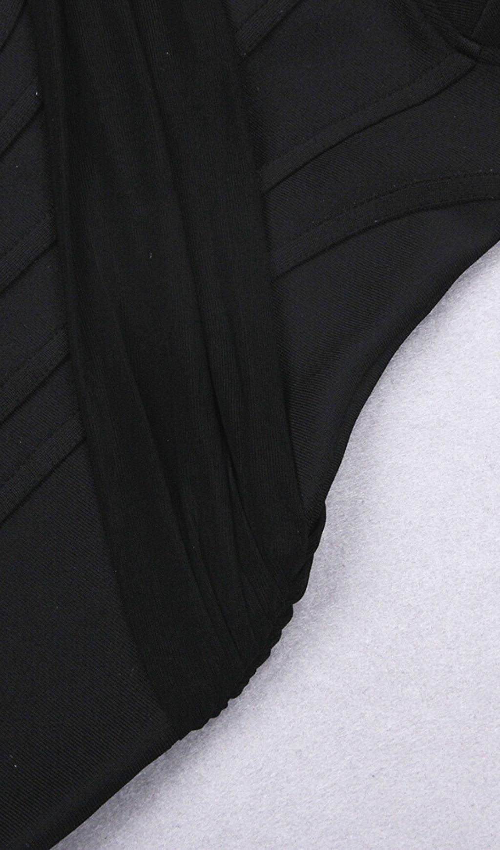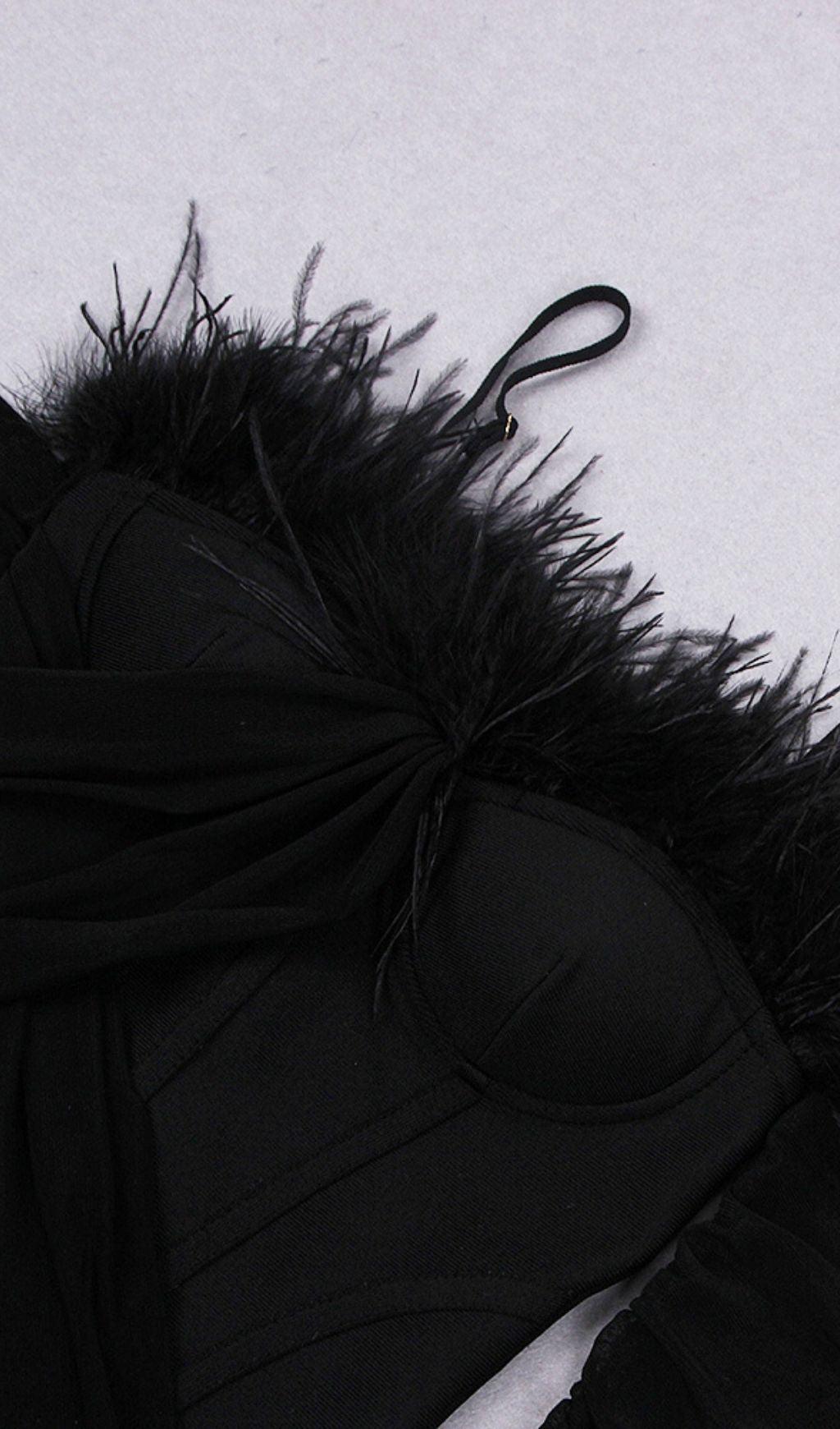 FEATHER LONG SLEEVE BANDAGE MINI DRESS IN BLACK