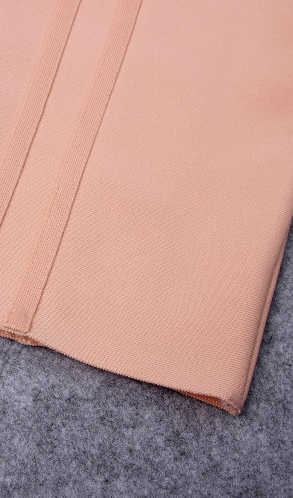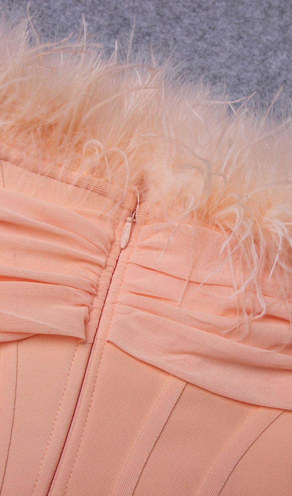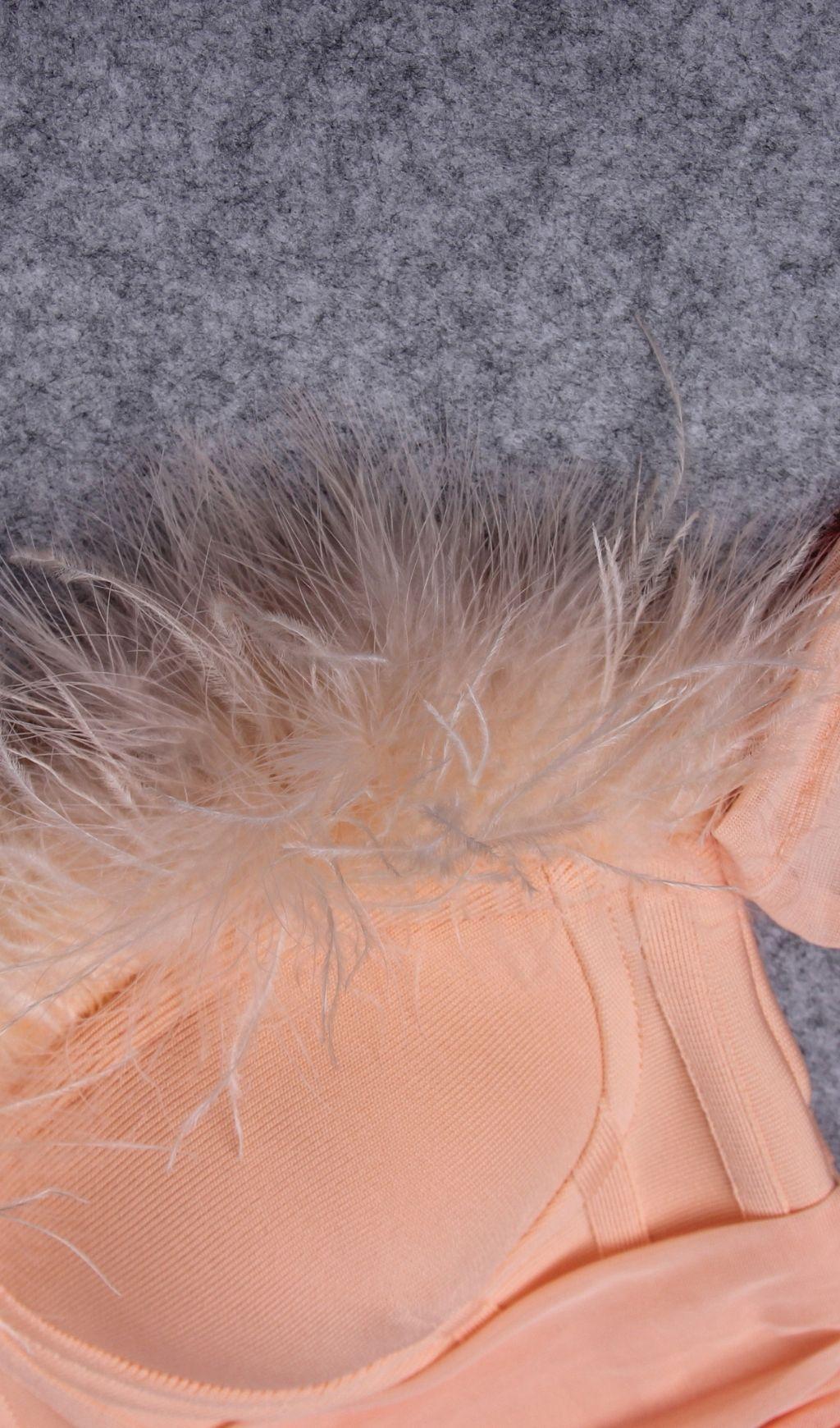FEATHER LONG SLEEVE BANDAGE MINI DRESS IN BLUSH PINK
