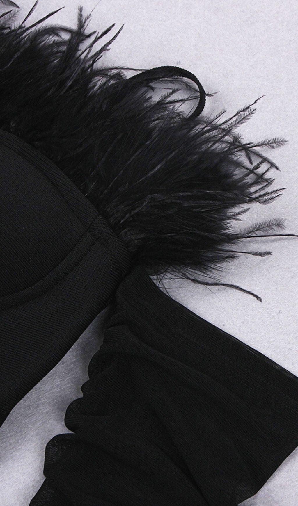 • Feather detailing on the sleeves adds a touch of elegance and sophistication.