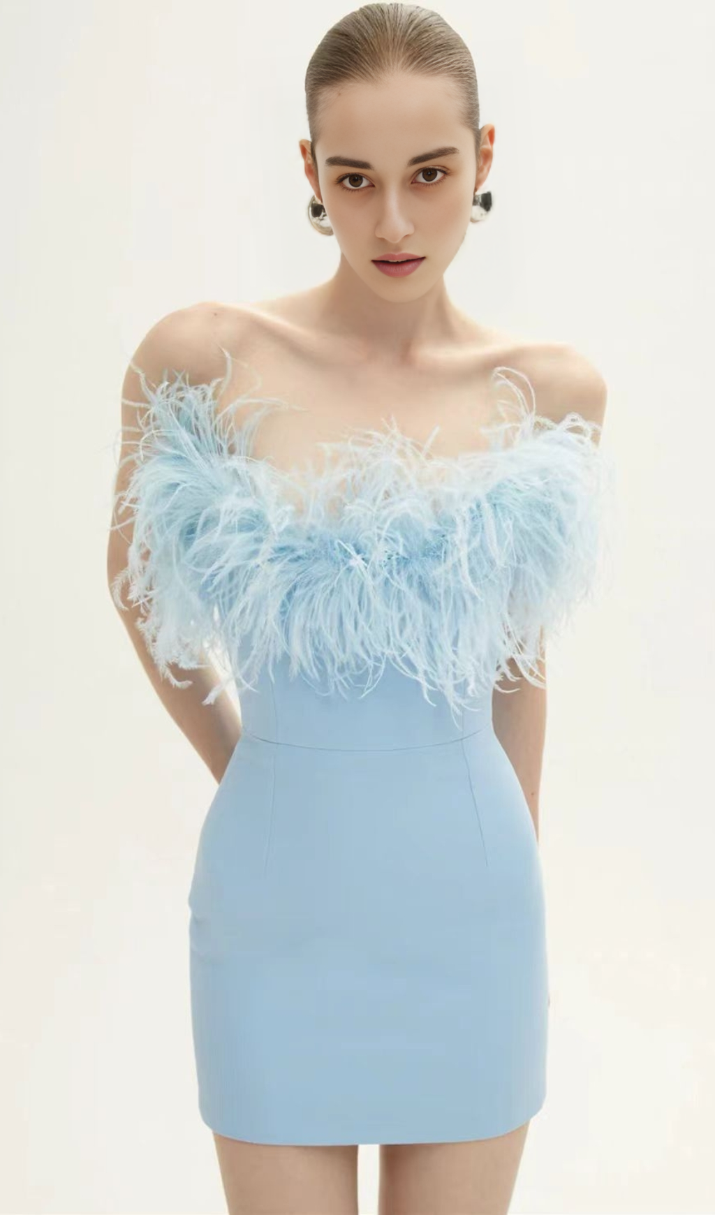 Stand out in this vibrant feather mini dress! With its royal blue color, you'll be the center of attention. And let's not forget the fun, playful touch of feathers that will make you feel like a true fashionista.